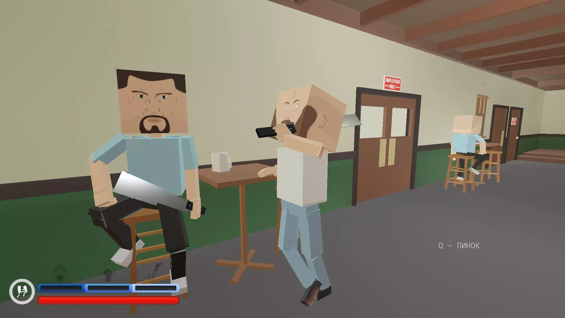 砍刀时间——另一个有趣的修改器。当你开始一个关卡时,所有非玩家角色手中都会持有砍刀(当然你除外)。如果你格挡砍刀攻击,有时仍会受到伤害。所以尽快逃离他们是个好主意。