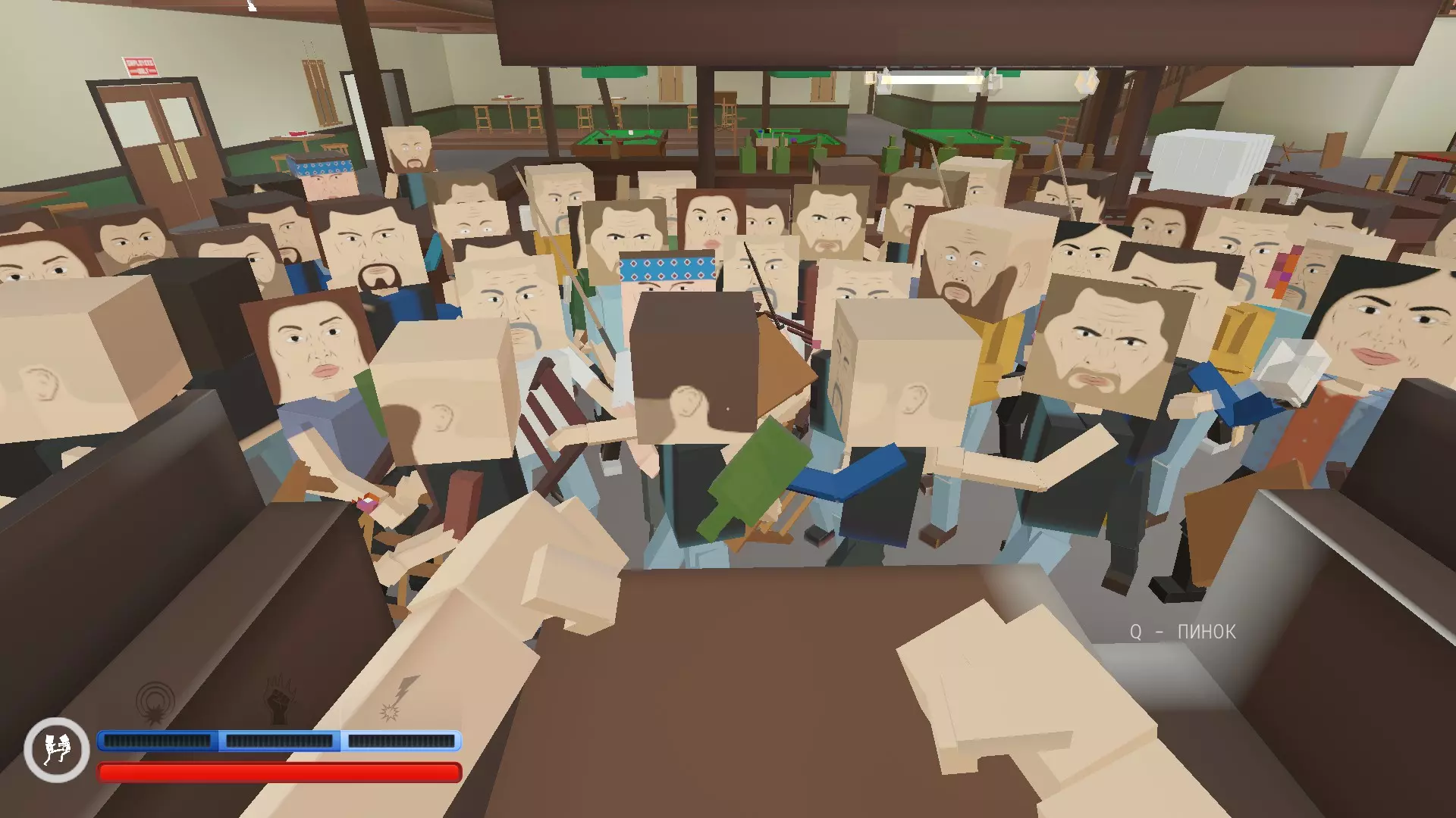 【仅用拳头】- 从现在开始,你唯一的武器就是你的双手。你也不能踢敌人。 很好!现在我们可以像战士一样战斗了!徒手格斗!这是所有战斗的基础!只有傻瓜才会把自己的生命托付给武器! 注意:你将无法拾取任何武器或物品。别尝试了。 【人人喊打】- 当你开始战斗时,所有人都会跑向你“拥抱”你。好吧,他们显然不是想拥抱你……快跑,别停下!!!