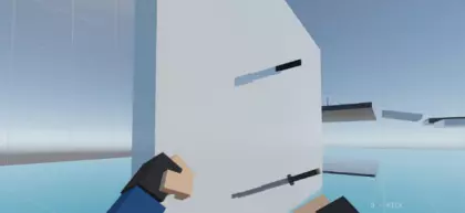 重要提示!第二把刀必须插在第一把刀的稍左或稍右位置,因为如果两把刀在同一条直线上,我们将无法跳上去。