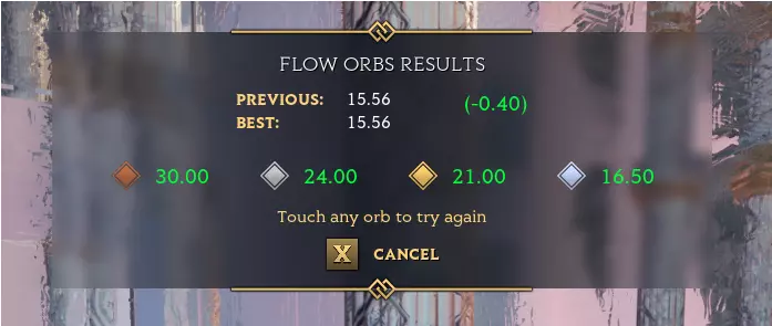 按照以下顺序收集宝珠,你甚至可以一次都不用“飞行”能力就能完成。最后,我成功在不飞行的情况下用了不到16秒就完成了(目标时间是16.50秒)。你可以尝试调整路线来获得更好的成绩。