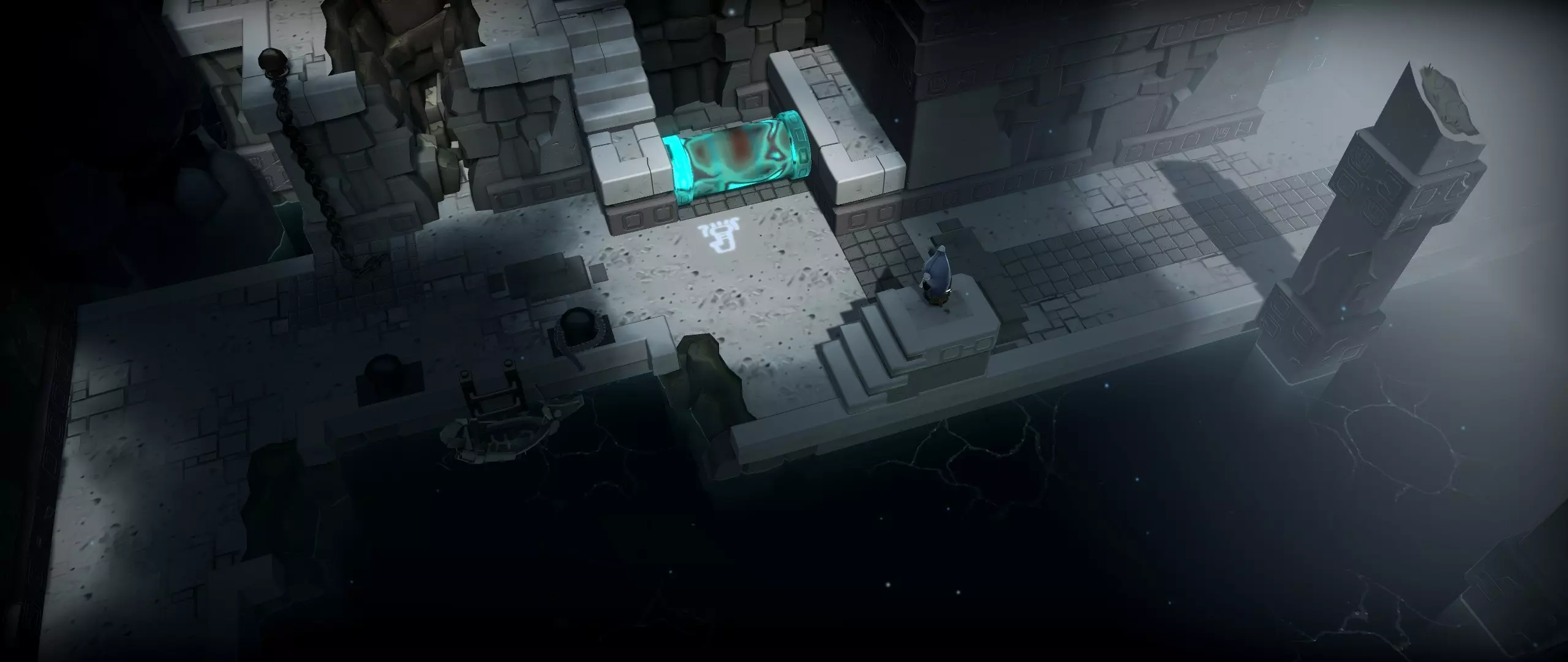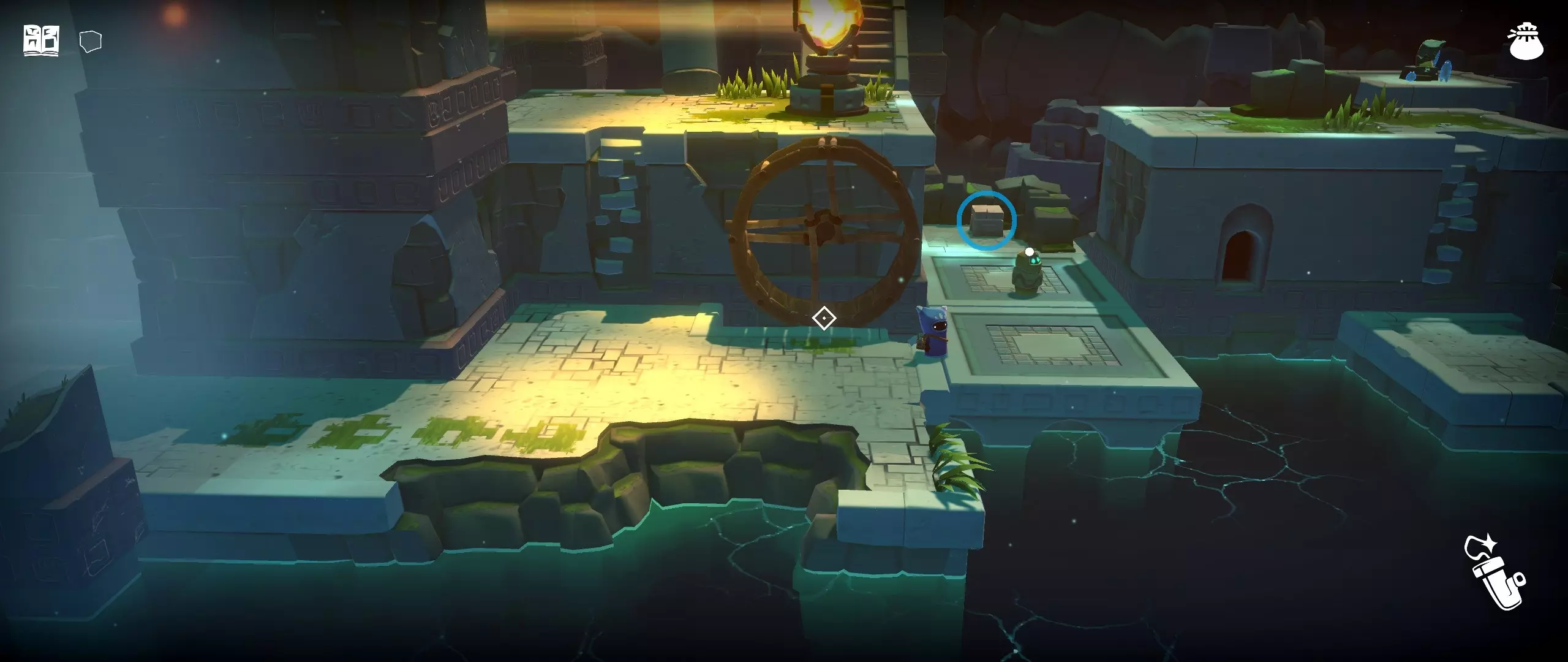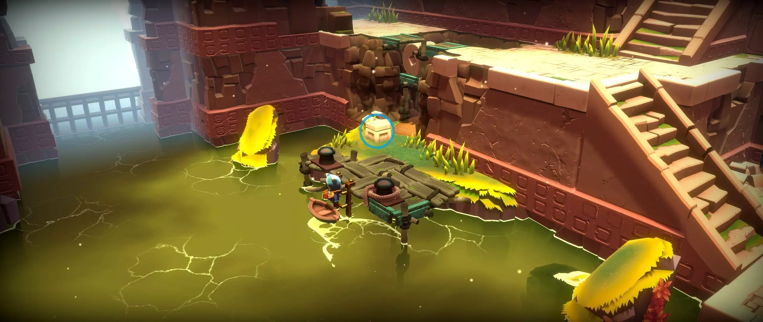 38.篝火东边的水道。 提示:使用灯笼,圆柱体可以旋转。
