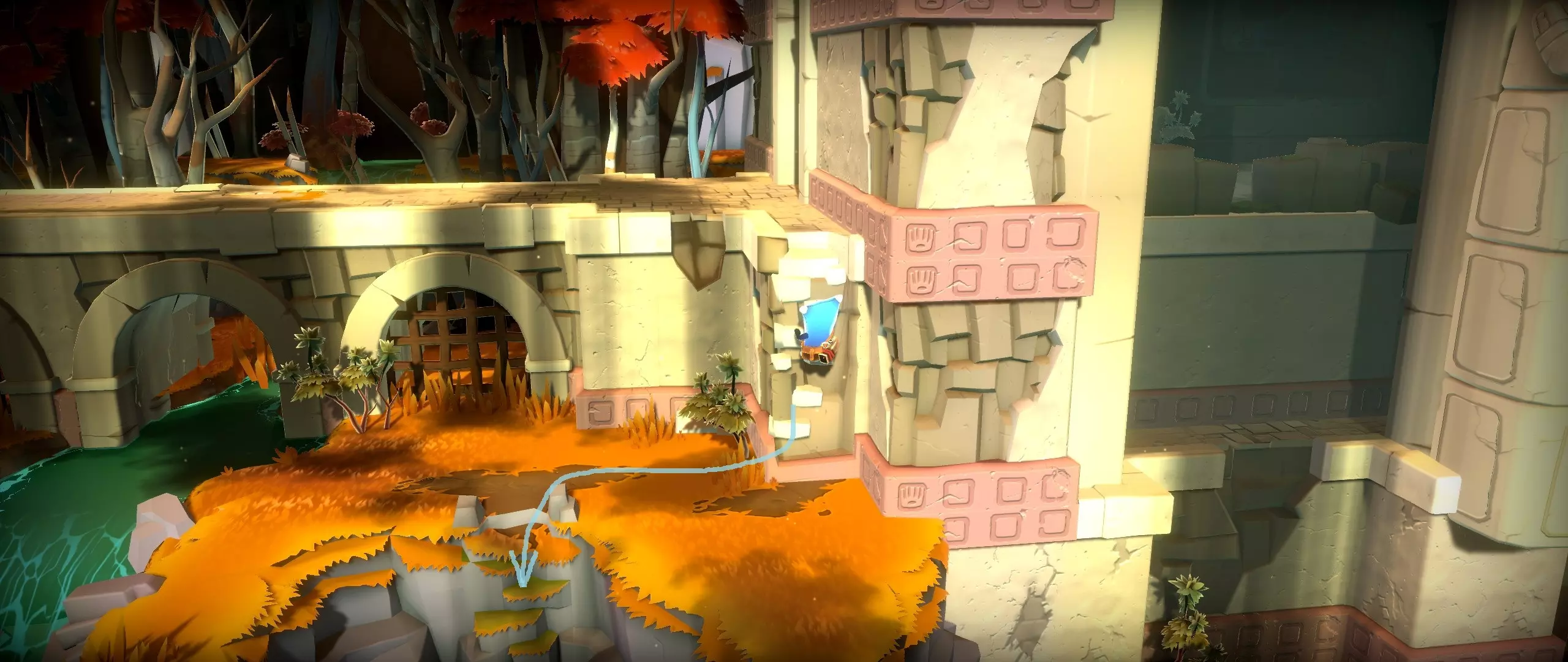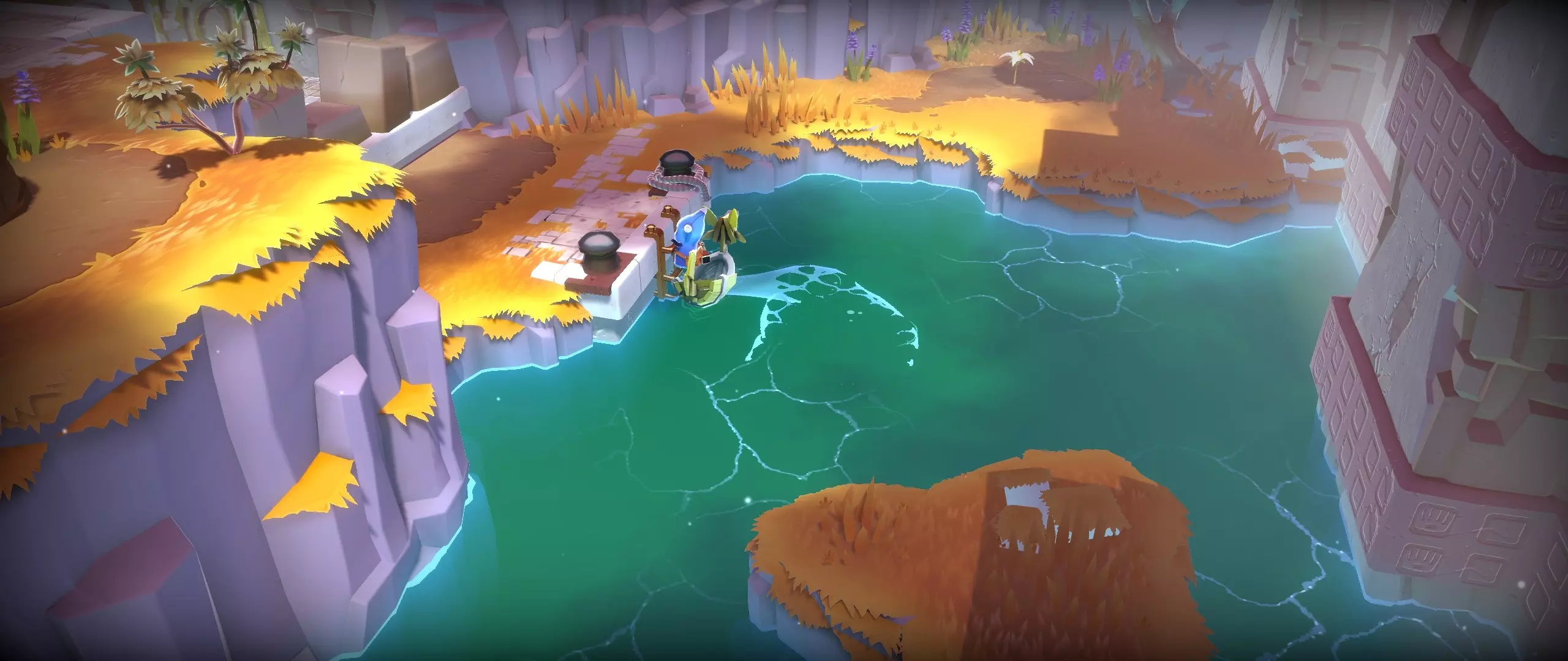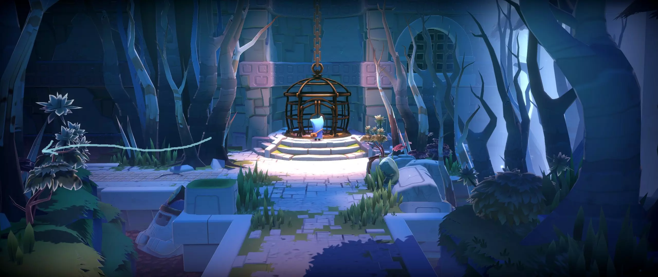 38.篝火东边的水道。 提示:使用灯笼,圆柱体可以旋转。