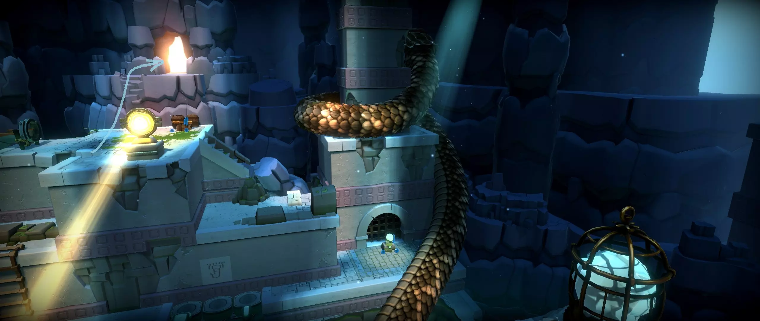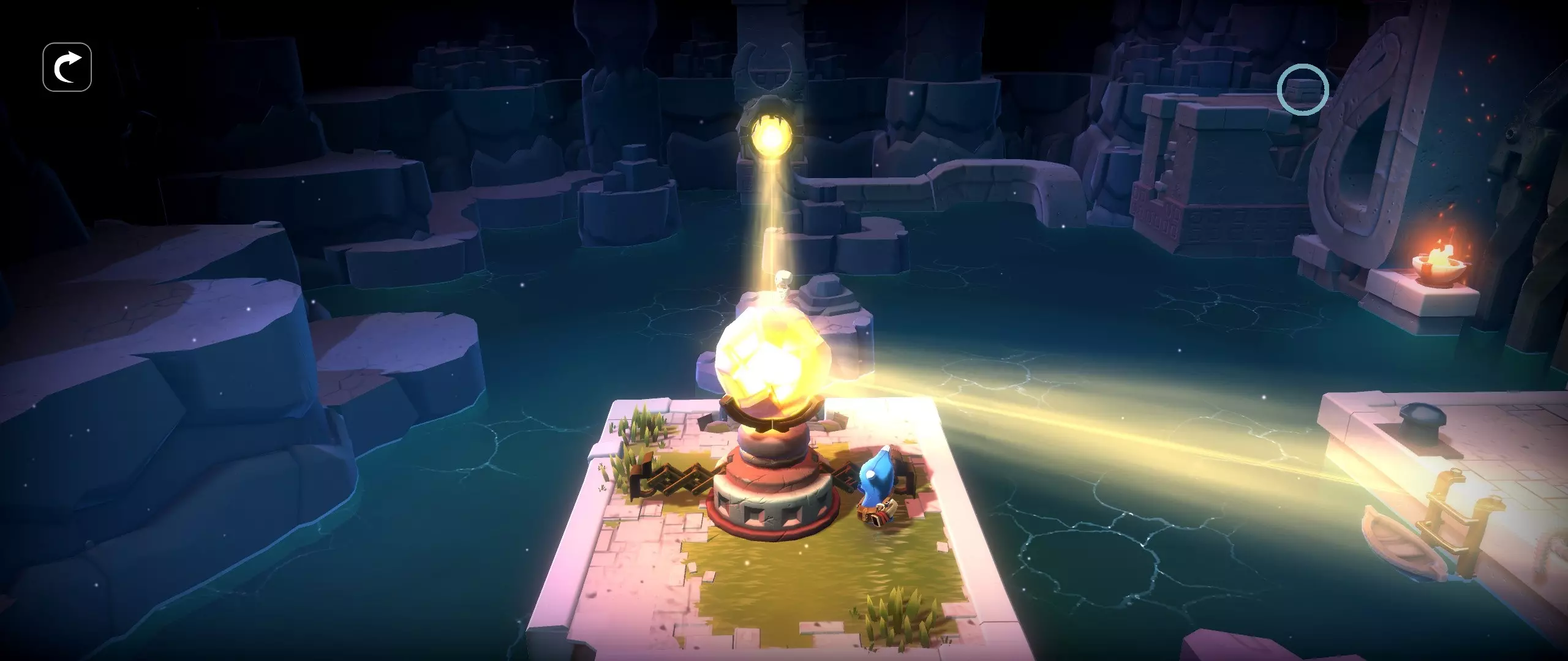 33.洞穴,蛇形大门开启前。 提示:将光束转向左侧并使用小船。