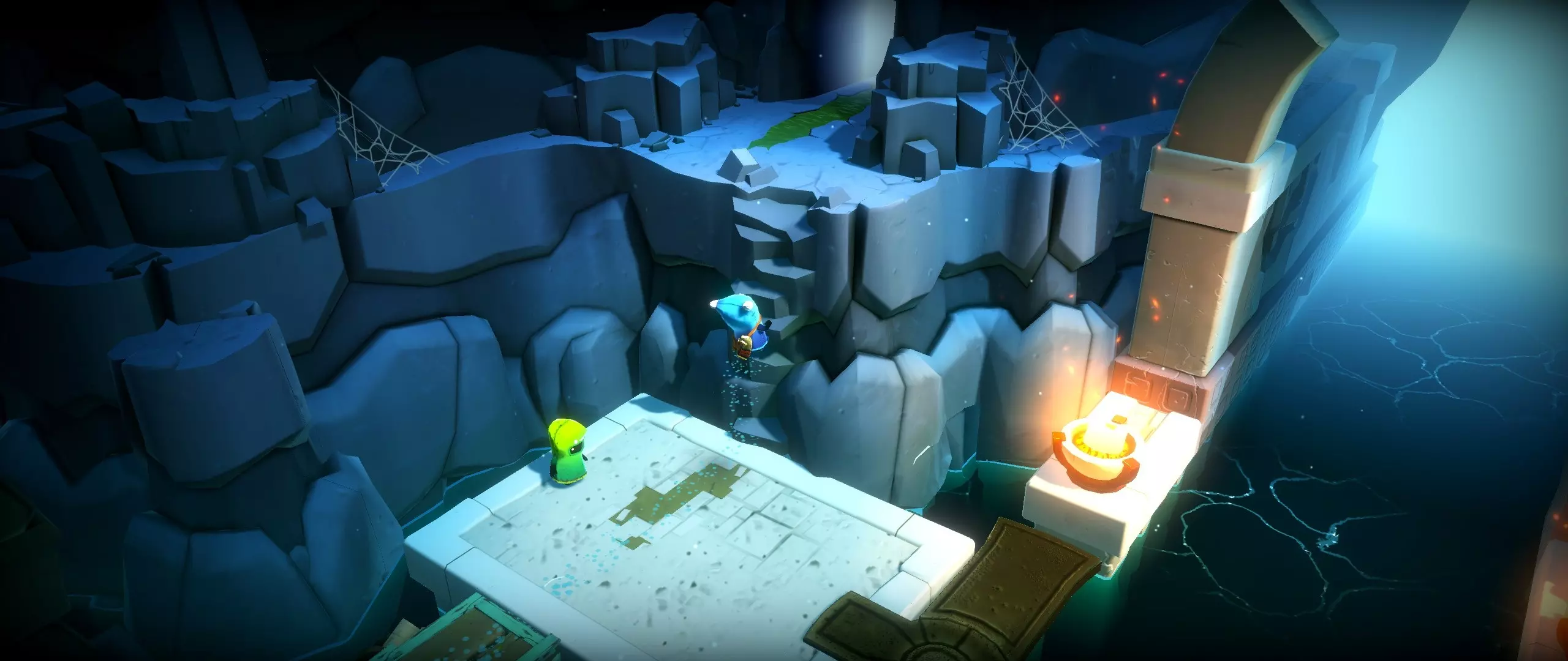 洞穴篝火区域 34.从篝火向西走。 提示:向下爬并使用灯笼。