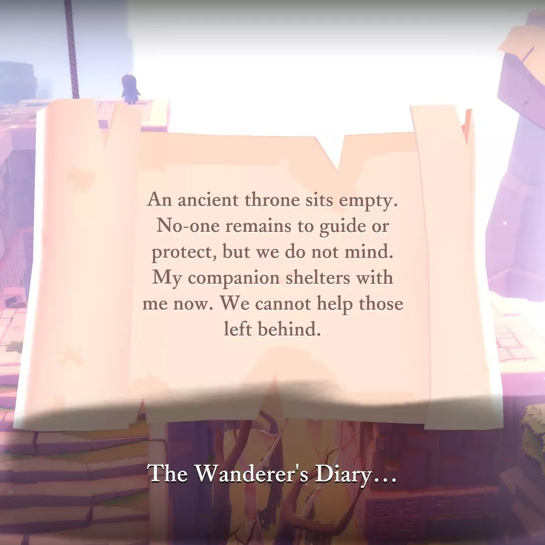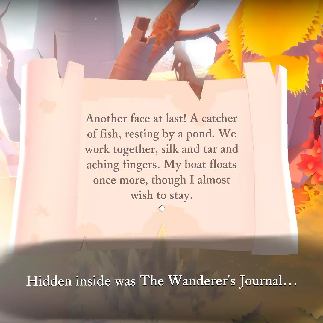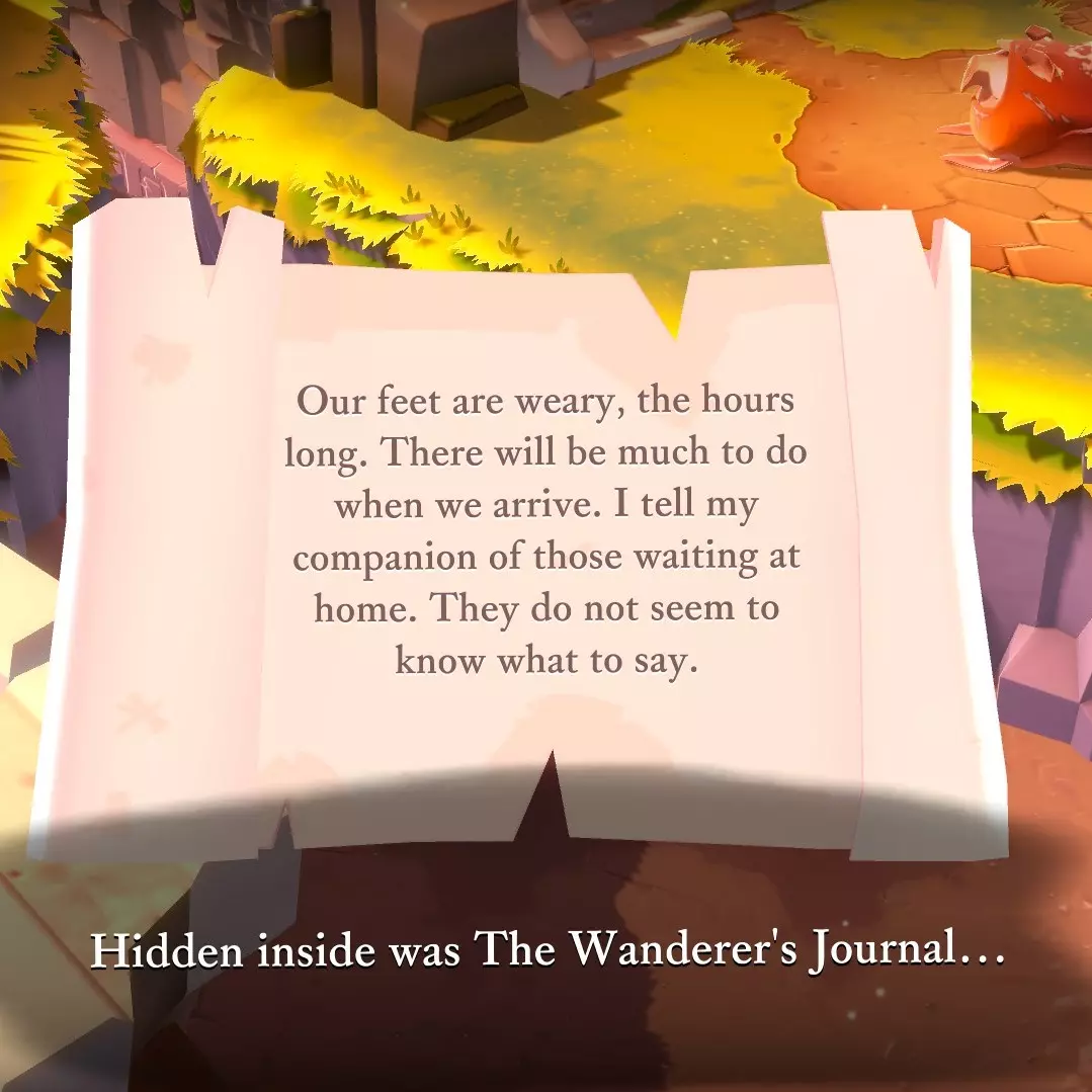 那些随处可见的隐藏箱子里装着什么?里面藏着《漫游者日记》的书页。 查看地点列表,获取它们藏匿位置的线索。 《漫游者日记》本身——如果你不想重玩游戏,但又想在通关后阅读错过的隐藏笔记,可以通过它实现。 不含剧透部分 游戏中有42条隐藏信息,向你讲述一位曾走过这条路的陌生人的故事。这位陌生人是游戏中的一个角色,你可以像遇到那些被记录的人一样遇到他。 找到后,你可以在背包的【遗忘之物】中查看这些信息。