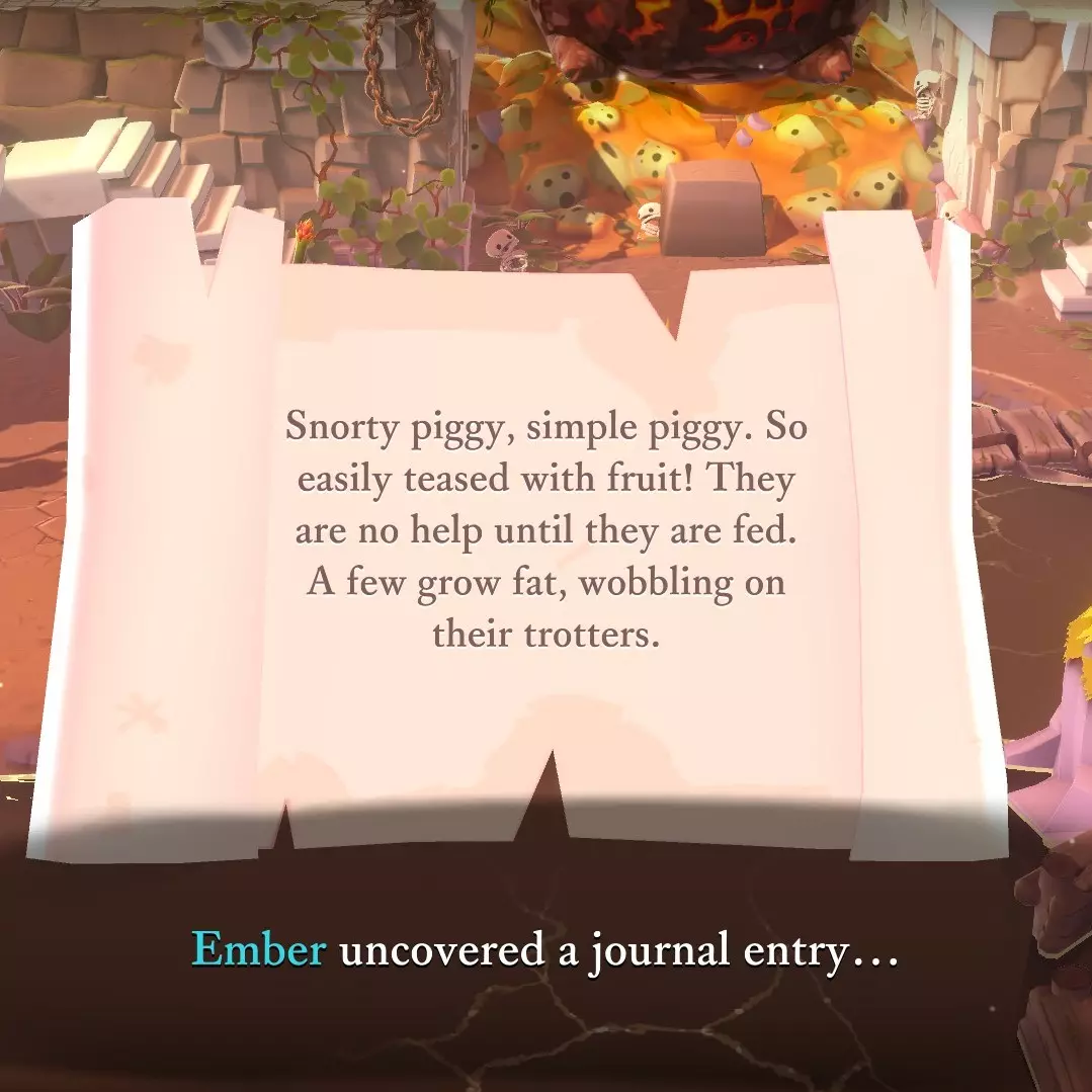 18. 沃洛边缘 - 从厨师位置向南走。 提示:向下滑动水果给小猪。
