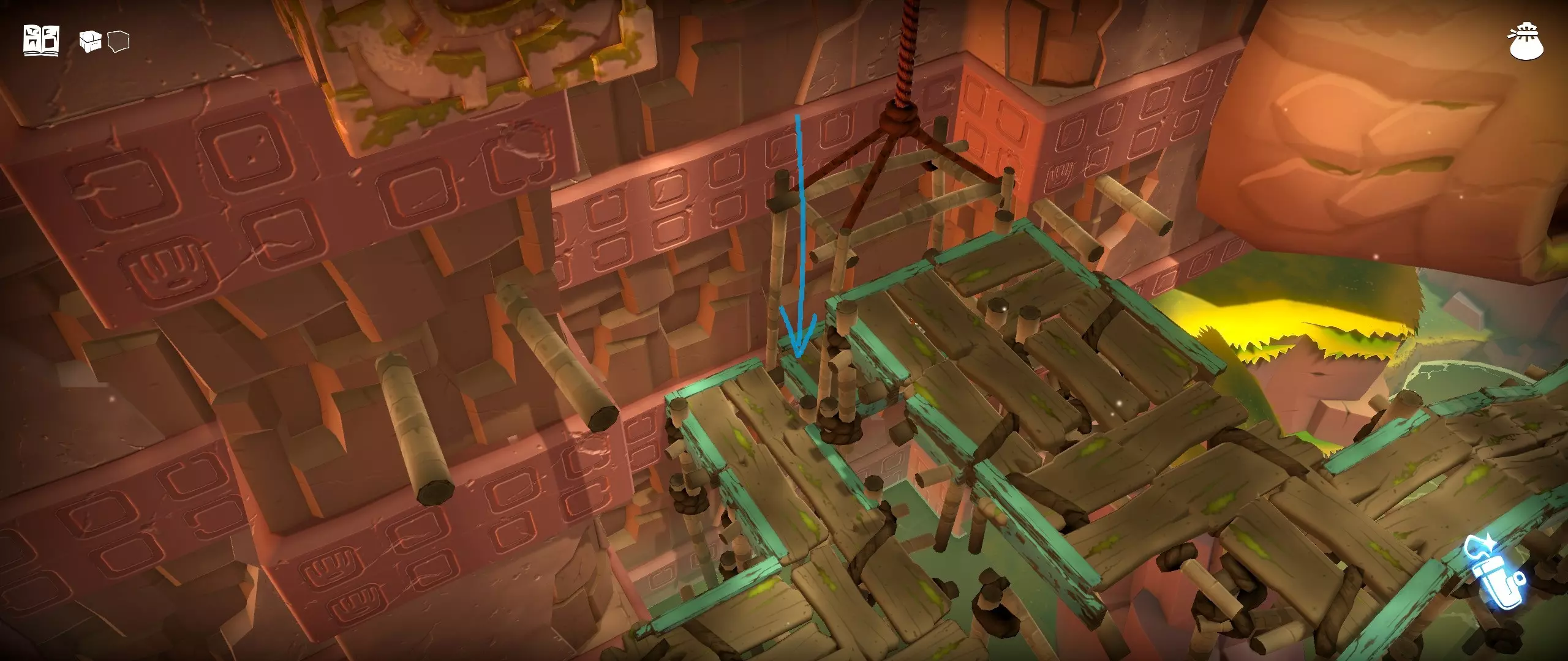 41. 营火西边的水道,点燃烽火台之后。提示:使用灯笼并向上攀爬。