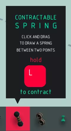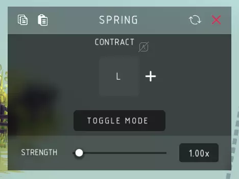 弹簧收缩: > 将弹簧两端拉向彼此。 切换模式: > 在收缩和中立状态之间切换弹簧。 强度: > 弹簧两端相互拉动的速度和力度。