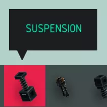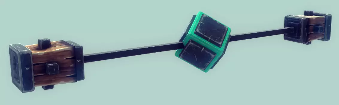 名称 悬挂装置 尺寸 3.25x1x1 可破坏? 否 易燃? 否 【悬挂装置】方块本质上是一个实心方块与另一个实心方块相连,下方有一个非实心的弹簧柱。两个方块连接非常牢固,但可以暂时拉开。带弹簧的方块可以被推向另一个方块,并提供持续阻力。当你不想破坏物体或造成伤害时,这个方块非常有用,因为游戏中的大多数破坏和杀伤机制都基于冲击力或物体停止时的速度。