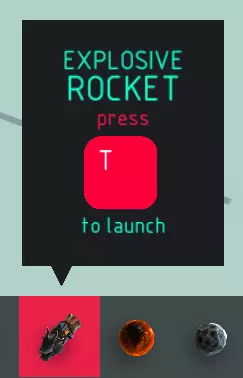 名称:爆炸火箭 尺寸:1x1x2 可破坏?:爆炸 易燃?:可加热 【爆炸火箭】是一种烟花火箭,会自行发射并在设定时间后或受热时爆炸。不过该火箭精准度很差,因此若不进行组装(例如安装飞行螺旋桨来让火箭旋转),几乎不可能击中远处目标。