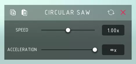 圆锯 速度: > 锯片旋转的速度。 加速度: > 锯片达到其速度的快慢。