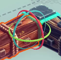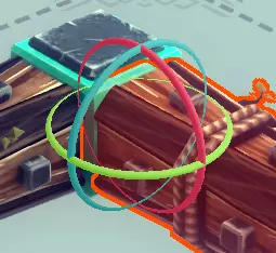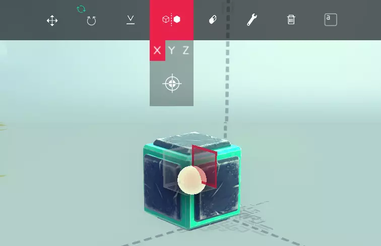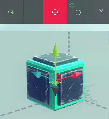 【全局轴开启状态下的方块A】 【全局轴开启状态下的方块B】 旋转工具可让你围绕3个不同的轴旋转选中的单个或多个方块。只需点击并拖动彩色圆环即可旋转方块或方块组。镜像工具