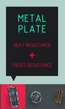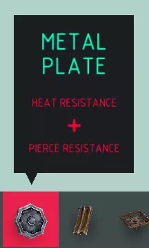 名称 金属板(小型) 尺寸 1x1x0.33 可破坏? 否 易燃? 否 小型“金属板”是你的主要装甲方块。它能保护你的机械免受箭矢、斧头、剑、长矛等武器的伤害。尽管金属板对火焰免疫,但它不能阻挡火焰,这意味着火焰仍能点燃其下方的方块。