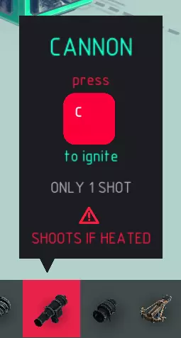 名称 加农炮 尺寸 1x1x3 可破坏? 否 易燃? 可加热 【加农炮】是你应对大多数情况的主要武器。它能有效摧毁建筑、飞艇和实体,不过一次只能发射一发炮弹。开炮时会产生较大的后坐力。加农炮也可通过加热来触发发射。
