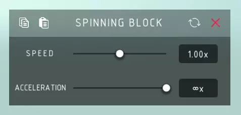 旋转方块 速度: > 旋转方块的旋转速度。 加速度: > 旋转方块达到其速度的快慢程度。