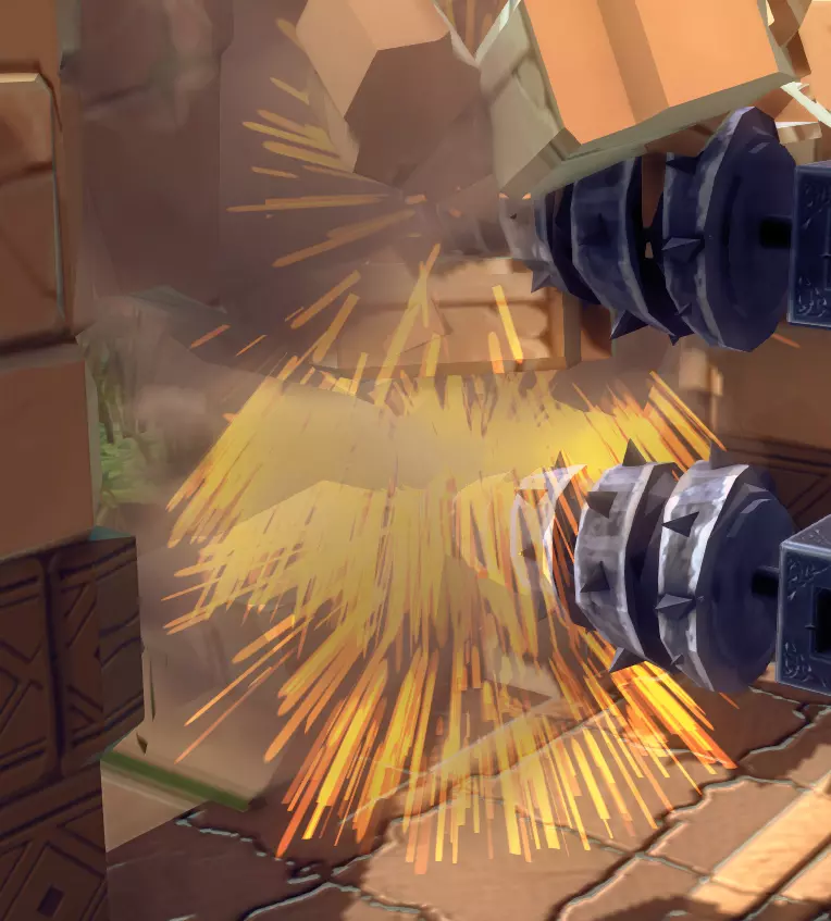 可破坏方块在承受过多伤害时会破碎。这与方块因被过度拉扯或弯曲导致连接断裂而分裂的情况不同。 【破坏石头】