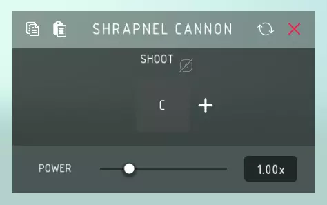 破片加农炮 射击: > 发射破片加农炮。 威力: > 破片加农炮的发射力量大小。