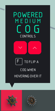 中型动力齿轮 前进: > 使齿轮向前旋转,编辑时可通过侧面箭头指示。 反转: > 使齿轮向后旋转,编辑时可通过侧面箭头指示。 自动: > 无需控制键即可自动旋转齿轮。 切换模式: > 控制键可切换齿轮的开启和关闭状态。 自动制动: > 控制键停用后,齿轮会自动减速至0。 速度: > 齿轮旋转的最大速度。 加速度: > 齿轮达到最大速度的快慢程度。