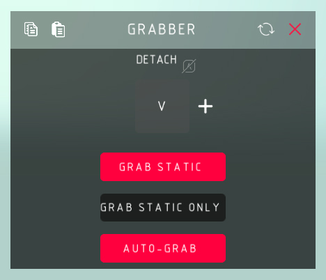 抓取器 释放: > 释放已抓取的物体。 抓取静态物体: > 切换抓取器抓取静态物体的能力,包括场景几何物体。 仅抓取静态物体: > 切换抓取器使其仅抓取静态物体,包括场景几何物体。 自动抓取: > 切换抓取器的自动抓取物体能力。释放控制键现在同时控制抓取和释放。