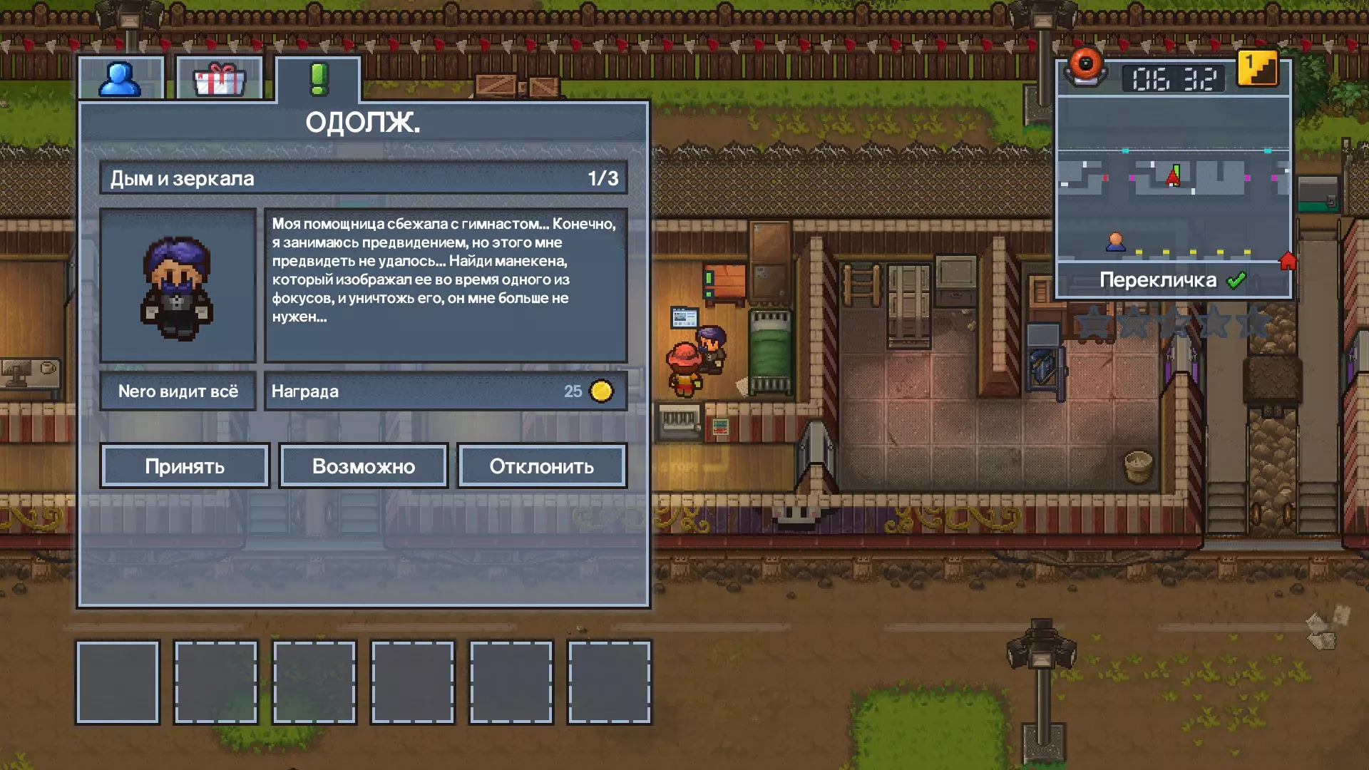 1 任务:您会收到一封信,需要将其交给指定的囚犯。 2 任务:取领领结并交给对方。