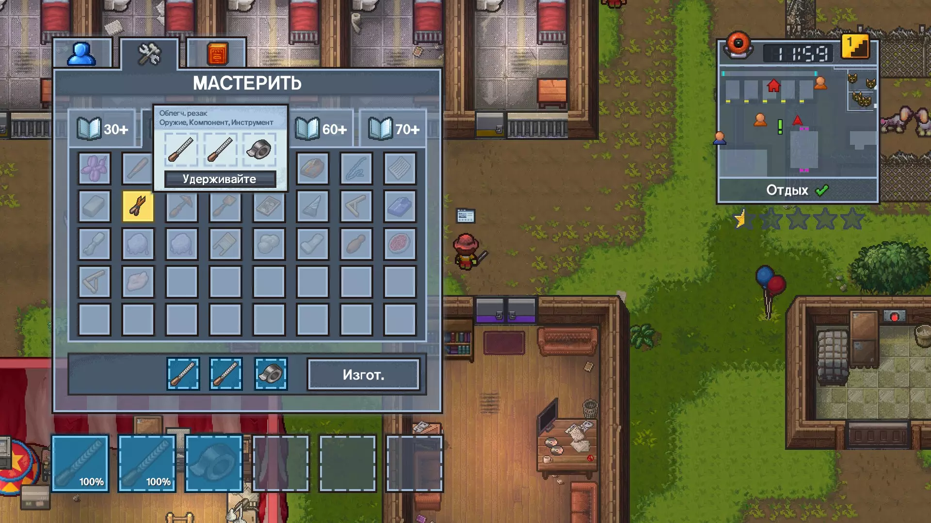 3 任务:用2个锉刀和胶带制作简易切割器(需要40点智力)(物品已在地图上标记),然后将其交付。