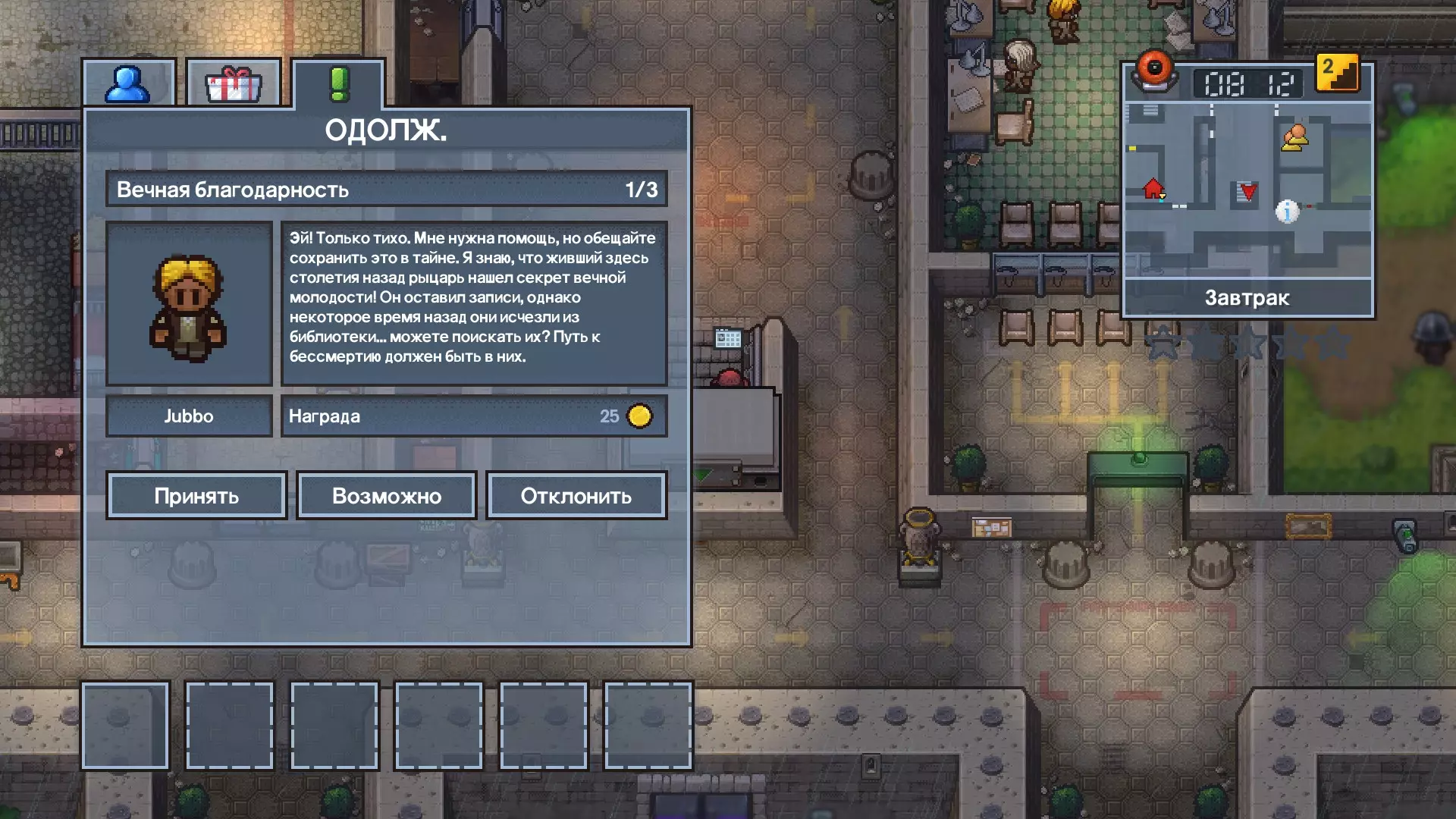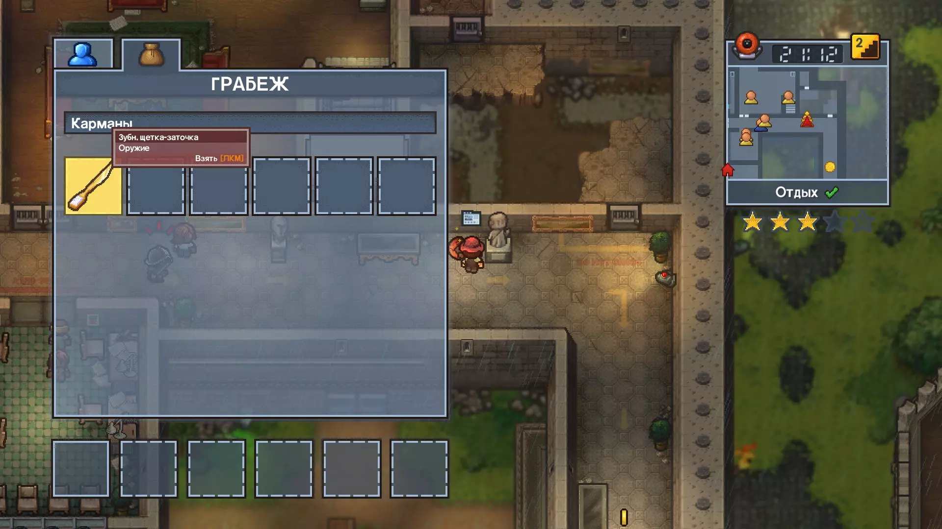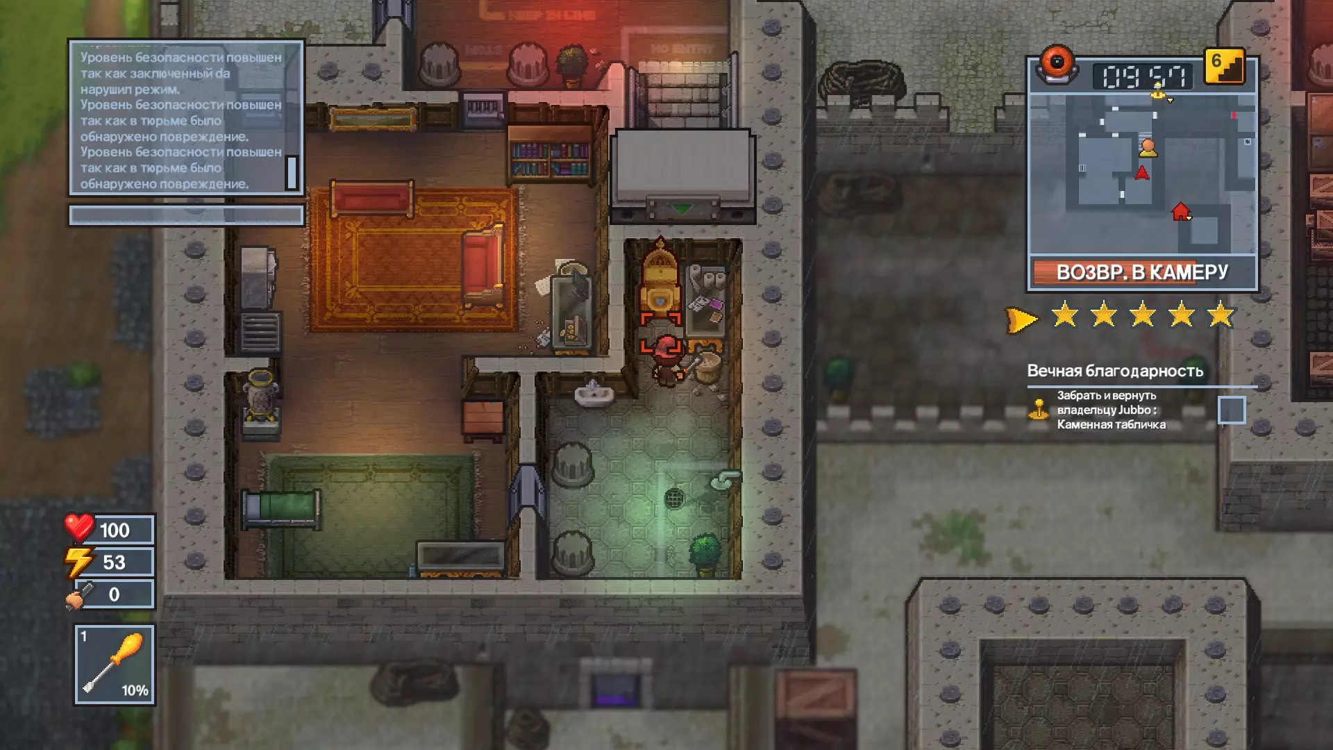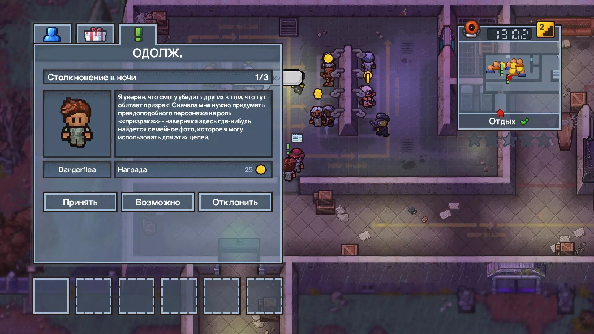 1 任务 - 将信件交给指定的警卫。 2 任务 - 打倒指定的囚犯,从他那里拿走磨尖的牙刷,然后在厕所里冲洗干净。