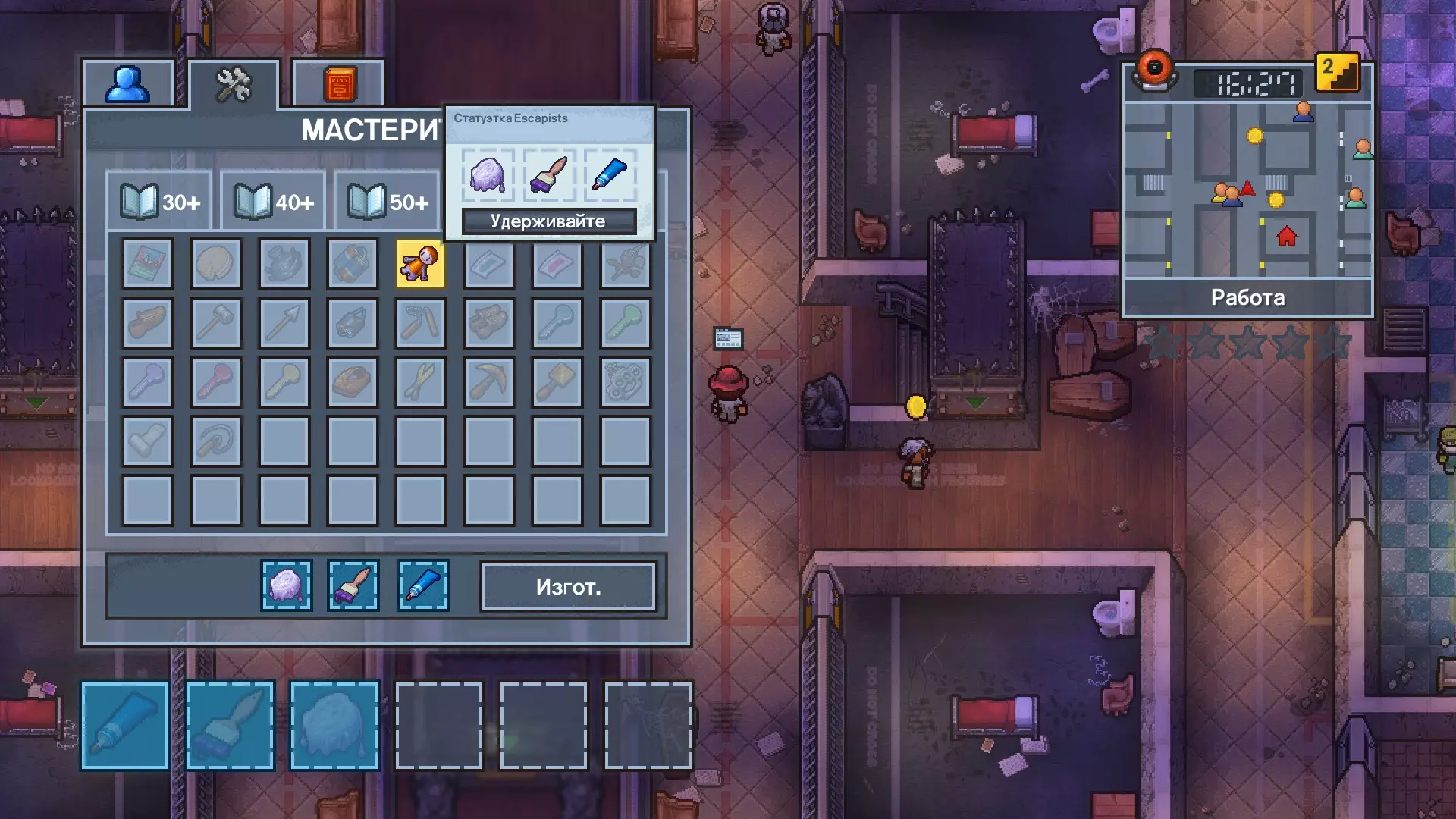 3 任务:用胶棒、熔化塑料、准备好的画笔制作一个【逃脱者】雕像(需要60智力),并将其放入指定箱子中。