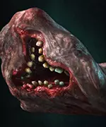 游戏中你遇到的第一个敌人,同时也是主要敌人。它们以血液为食,因此会不断试图用从嘴部区域伸出的“吸盘”吸附到角色身上。基于此,建议尽量不要让它们靠近,最好从远处射击。对付单个敌人时,普通手枪就足够了;如果发现远处有一群敌人,则根据情况使用步枪或冲锋枪来解决它们。如果多个敌人已经非常靠近你,就拿出霰弹枪。同时也不要忘记生物手雷,如果弹药紧张,它们能帮上大忙。另外,当你发现来不及射击且无处可逃时,很容易躲开这些敌人——在它们开始攻击的瞬间,按下前进键/前进键+动作键即可。这里的关键是熟练操作,一开始可能会很难,但一旦习惯了,你几乎可以轻松绕过任何【节点】。差点忘了,攻击头部对它们造成的伤害最大,和几乎所有敌人一样,但有时直接击晕它们会更方便。为此,你需要依次射击它们的两只手,一旦怪物低下头,就靠近它,按住按钮,全力攻击。通常情况下,一次完全充能的攻击就足够了,而且还能顺带击中附近的其他目标。 软泥怪(钳形)
