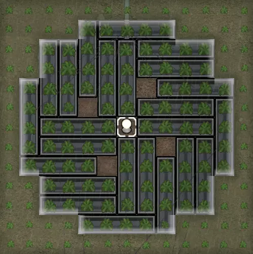 在游戏初期,你可以将任何现有的废墟改造成临时的囚犯营房,或者建造一个简单的囚舍来关押所有捕获的囚犯。尽量不要把它建得离你的主要建筑太远,否则会更难抓住逃跑的囚犯。另一个选择是,在你建造另一个卧室或合适的监狱时,将一名殖民者的卧室标记为临时监狱。 你应该为囚犯配备桌椅。这将改善他们的心情,从而降低他们精神崩溃的几率,并提高招募速度。 与殖民者一样,囚犯如果被关在同一个囚犯营房里,也会因拥挤而受到心情惩罚。此外,越狱事件一旦发生,后果会更为严重,因为同一房间内被关押的所有囚犯会同时越狱,而不同牢房的囚犯可能不会选择参与。因此,你应该将他们分开关押。 每个牢房都应配备一张桌子、一把椅子、一张床和一个光源。这是让囚犯得到体面安置的最低要求。装饰牢房并扩大其空间也能提升心情加成,从而更易于招募。囚犯无法使用牢房内放置的任何娱乐物品,他们也没有娱乐需求,所以除了为提升房间美观度外,无需费心放置娱乐物品。监狱的门应朝向你的基地,这样逃跑的囚犯会朝着你的基地方向移动,而不是远离,从而给狱警更多时间处理越狱事件。 拘留室是一种更大的牢房,有更多床位。它应该只在普通牢房人满为患时使用。将不太重要的囚犯安置在拘留室,同时把更有价值的囚犯分配到普通牢房。 多功能房间更多是早期到中早期游戏阶段的设施,你可以在建造专用建筑(如医院或更大的监狱)之前使用它们。不过,这些房间有时仍然很有用,比如当你的冷藏库或仓库满了,或者你需要一个地方安置大量受伤或生病的殖民者时。这相当简单:只需建造一个空房间,并配备合适的温度控制装置。如果你打算让某人(无论是殖民者还是囚犯)住在里面,可以添加床铺;不用时,你可以将床铺拆卸并收在角落里。 备用方案 你可以在地图上设置多种建筑,以便在紧急情况下拯救殖民者的生命: 【避难所】:建造带有应急物资的小房间,可以让殖民者躲避愤怒的动物。足够厚的墙壁(至少4层)可以阻止袭击者伤害躲在里面的殖民者。 【营养膏分配器】:当食物短缺或你预测食物将短缺时,营养膏分配器可以通过将生食高效转化为营养膏,显著减缓食物消耗。生产 你还需要各种建筑来生产或制造殖民者所需的物资。 农田 农田的操作相当简单。只需设置一个种植区,指定想要种植的作物类型,种植者就会自动去种植作物。 在划定种植区域前,你需要仔细检查土壤肥力。 石质土壤乍一看和普通泥土很相似,但肥力大大降低,会减缓植物的生长速度。 而肥沃土壤颜色明显更深,肥力更高,适合种植恶魔strand(devilstrand)等生长周期较长的植物。 你需要防止大多数动物啃食你的庄稼。你可以将区域设置为不让家养动物进入,但需要建造围墙来阻挡野生动物。如果你不打算建造温室,那就要注意建筑工人可能会自动为这个【房间】加盖屋顶。