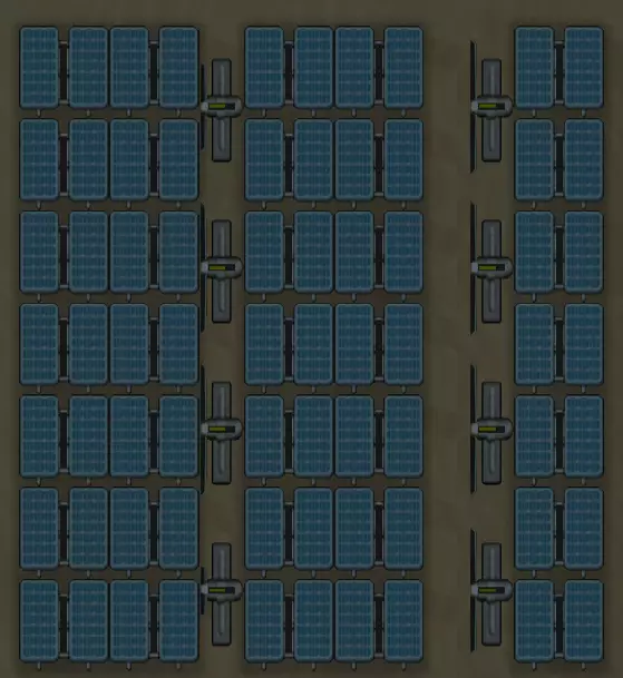 Solar generators provide power only during the day except during eclipses. It provides a constant 1700W, quite a decent figure, but still shouldn't be fully relied on. Wind powerWind turbines provide unstable power day and night. It can provide up to 3450W or nothing at all, and rarely hits its peak production. It requires plenty of open space for maximum efficiency, and any obstacles in its area reduce efficiency. To prevent trees from growing and obstructing the turbines, put down floors, grow crops underneath the turbines or fill in the gaps with solar generators. Fueled generationYou can build the wood-fired generator which runs on wood, or the chemfuel powered generator which runs on chemfuel, constantly providing 1000W of power. It is a good idea to have some of these as a backup power source, or even as your main source in biomes that are loaded with forests that will replenish themselves, such as in the tropics or temperate forests. Chemfuel is significantly more efficient than wood, so once you research the refinery it's a better idea to refine wood into chemfuel before usage as fuel. Boomalope setupBoomalopes generate enough chemfuel to run 1 generator. 3 boomalopes give enough fuel to continuously power 4 generators for a total of 4000W. This is not taking into account any energy costs from growing food for use by the boomalopes. Infinite chemreactor setupInfinite chemreactors generate enough chemfuel to run a generator, which in turn generates more than enough power to run the chemreactor. 3 infinite chemreactors can generate enough fuel to power 5 generators, for a total surplus power of 4100W. Infinite chemreactors are only available as a reward for quests. Geothermal powerGeothermal generators constantly give 3600W of power after being built on a steam geyser, without requiring fuel. It is an important source of power from mid-game onward, as it is constant and high-powered. A basic mid-sized colony can be sustained using 5 generators, around the usual number of geysers found on the map. Research is required to unlock it. The generator itself is quite costly so it's best left to midgame. It is possible to rush the research for geothermal power, though you should be careful not to neglect other more important research projects. However, once researched and built you can have a constant power supply. Make sure your geothermal generators and their connecting conduits are well-protected as they often have to be placed far from base. Walling the generators helps protect them against raiders, but walling the conduits isn't recommended due to the cost and its hindrance on colonist field work. Be aware of the heat that the geysers release. If you closely wall and roof in a geothermal generator, the temperature inside will be quite high, enough to set combustibles on fire (including the generator itself). It is thus necessary to remove the roofs on such buildings. However, if the vent is close to your base in a cold biome, consider attaching it to your own base to help heat it. Power storageBatteries store electricity during times of excess and release it during times when demand exceeds supply. You will need batteries to store power if you're using unstable power supplies such as wind or solar power. Batteries must be kept under a roof to prevent short circuits. They should also be protected from external threats as losing batteries to raiders or mortars can cripple your power supply. Emergency powerSome events will cause you to lose power if you are unprepared. Some colonies rely on wind or solar power to power everything. Eventually, every colony with electricity will suffer from a conduit explosion. Since you will be relying on batteries to store your power, this can cause a lot of disruption if the renewable energy isn't enough to power your base while your now empty batteries recharge. Raiders attacking and destroying power conduits connected to power generators can sever power from the colony, reducing the power available. In all these circumstances, this can leave you without enough power for your freezers, production, hydroponics, temperature control or even your turrets. However, it can be mitigated: Backup batteries: Always have spare power stores, such as separate battery systems with switches. Once charged, flick the switch to isolate them from the rest of the power grid. Only reconnect it when your main grid has run out or the reserves need charging. Backup generators: Have some fueled generators that you bring online only if there's not enough power in the colony. This can allow your backup batteries to discharge slower or even recharge. If they are turned off they will not consume fuel.Vanometric power cellA vanometric power cell constantly provides 1000W of power regardless of any condition and can be placed nearly anywhere. Obtaining it can be quite hard due to its rarity, even in the mid-late game, yet a constant, uninterrupted source of power is always valuable to any colony. It can be used as a good starting power source when you are branching off to start a new colony. If not currently being used, batteries will slowly self-discharge. A vanometric power cell can be placed next to your reserve batteries to keep them topped off (connecting them using conduits makes them vulnerable to short circuits) if you have a large number of batteries, though most of the time it would be better to connect the cell to the main grid instead. Power networkIt's not a good idea to have just 1 conduit spanning the entirety of your base. While it saves materials, short circuits or other events can cripple your power supply to parts of your base. Instead, build a network with redundant pathways so that the grid will continue to function even if there is a break somewhere in the network. Consider using doors to cover up the beauty penalty for exposed conduit indoors. Since geothermal generators must be built on top of existing geysers, they are often located far from your base. It is