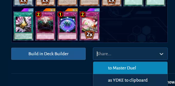 确定选择后,点击牌组下方的【Share】并选择【to Master Duel】