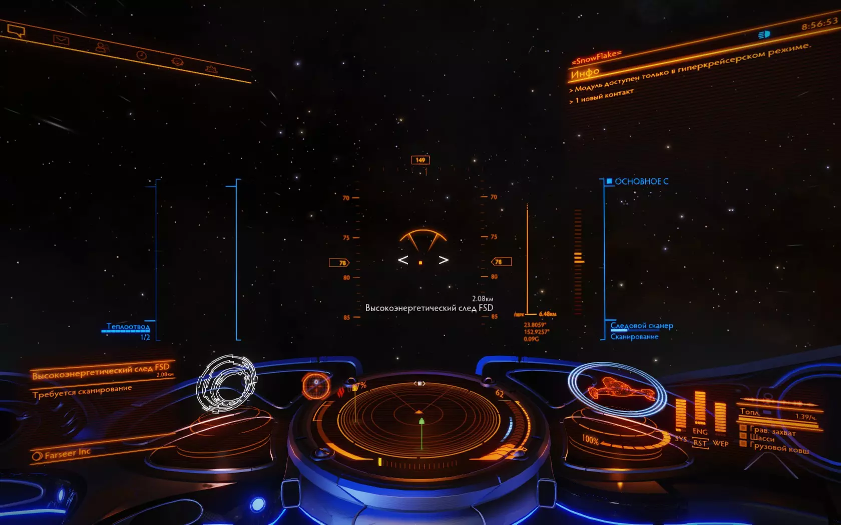 在空间站附近徘徊时,你会发现时不时有飞船从那里起飞。它们自然会进行跳跃。跳跃后会留下高能轨迹,该轨迹可在雷达和联系人列表中显示。你需要使用这个扫描仪来扫描这些轨迹。为此,你需要将其设为当前目标,并靠近到一定距离,在此距离内,前挡风玻璃上的扫描仪准星不会改变颜色(默认配色方案下是从红色变为橙色)。按住相应按钮,等待扫描完成,期间不要将船头转向其他方向(否则扫描会中断)。此外,扫描正在飞行的飞船也很有用。为此,只需将它们设为当前目标,并将其保持在扫描仪的工作范围内(30度航向锥区域内),等待小左屏幕上完成扫描即可。它们还会掉落随机的战利品数据,之后可以用这些数据兑换升级所需的物品。不用说,这类数据需要大量且种类多样。 完成上述所有任务后,返回老婆婆那里。 重要注意事项!在部分站点,你可以使用远程工坊,亲手对模块进行升级……