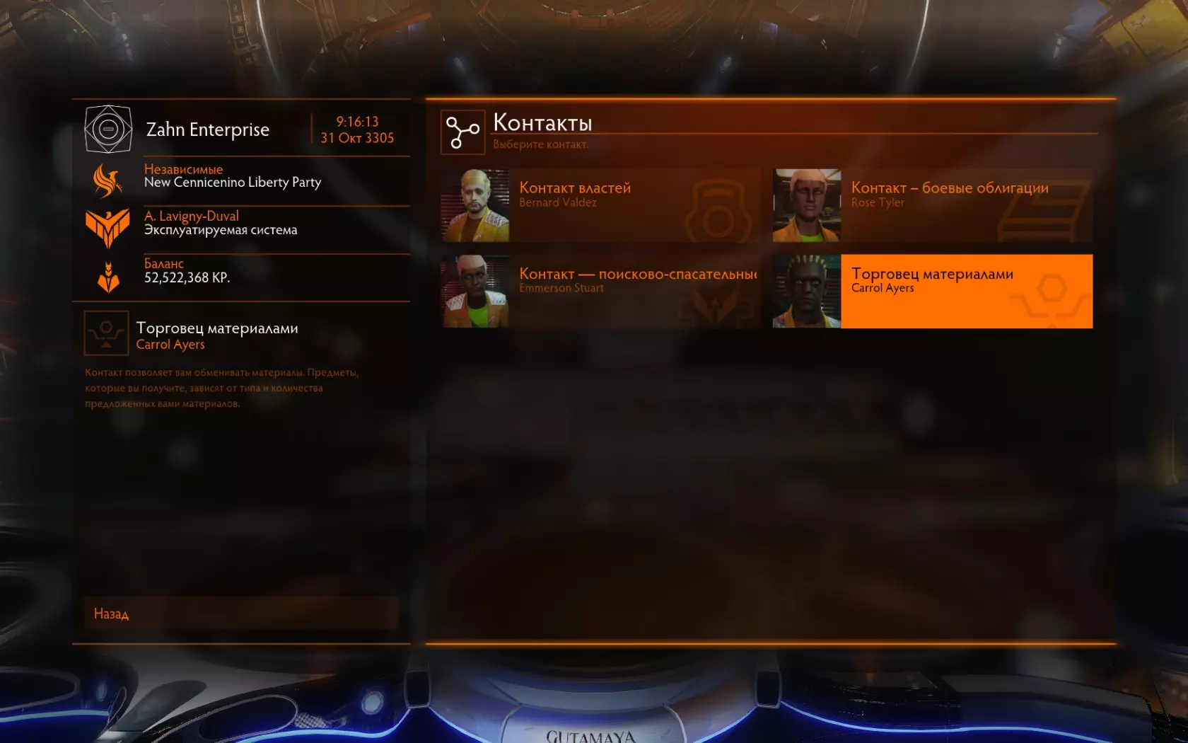 在平台上找到离您最近的星系和空间站,然后飞往那里。在空间站内,商人位于“联系人”板块。