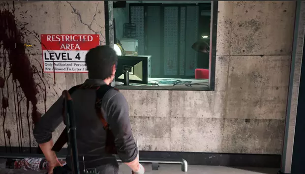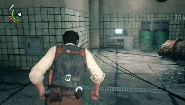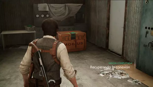 之后需要沿着那个敌人走的路前进,跟着墙上的电缆,这样就能到达保险丝盒。然后要回到之前无法进入的那扇门,爬上梯子。在那个房间的电脑上可以获得文件【电子邮件:目标】。