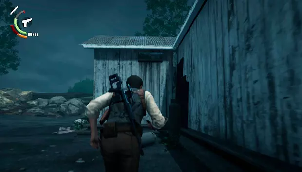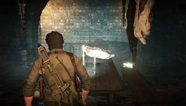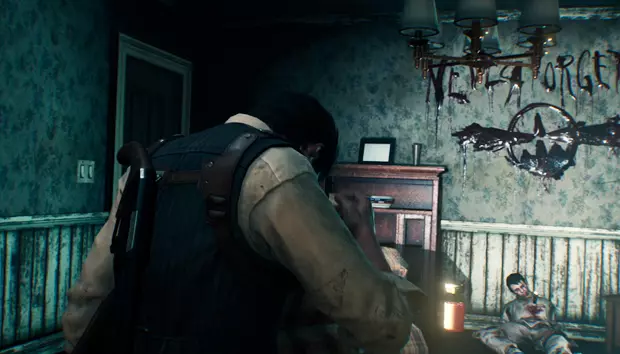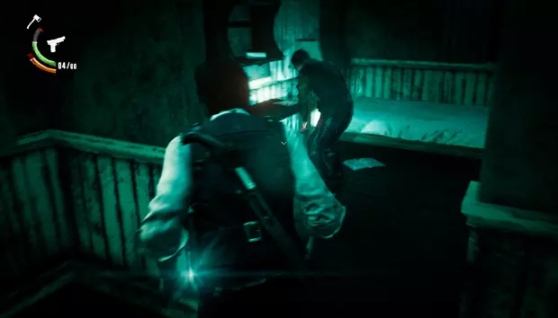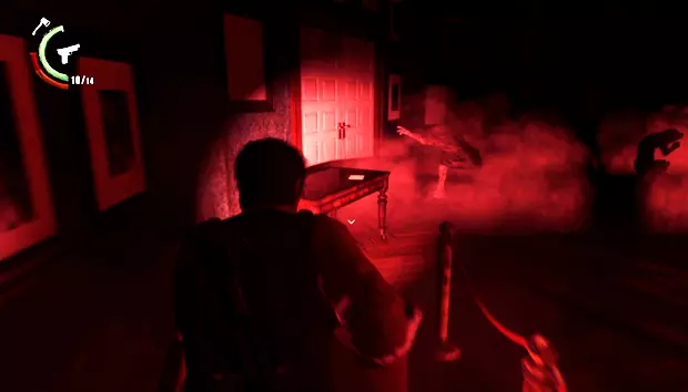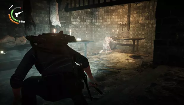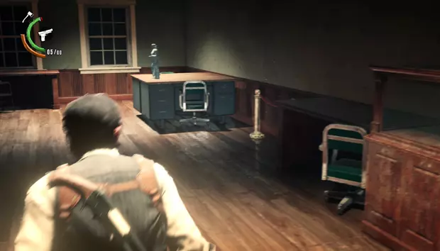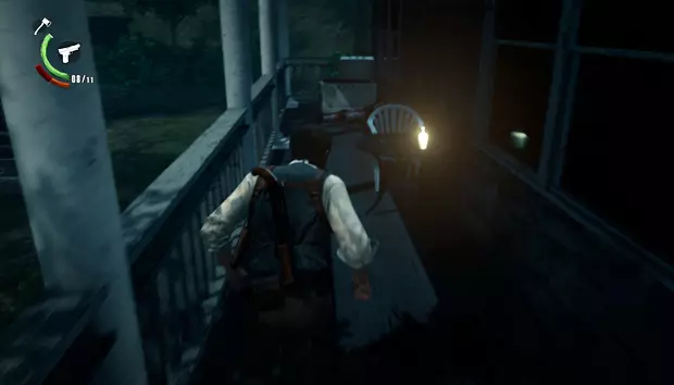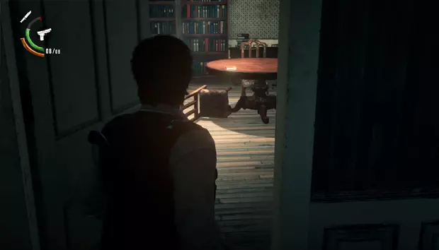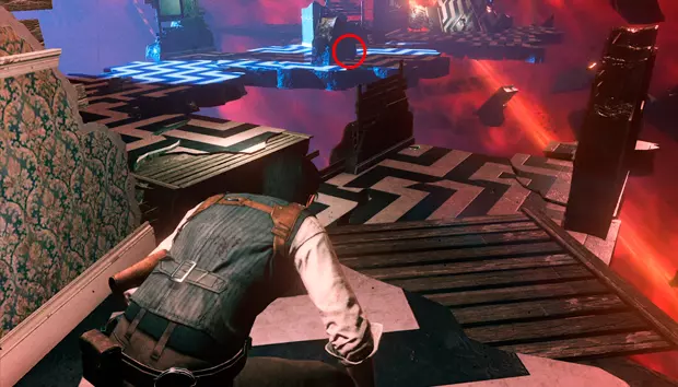 塞巴斯蒂安会出现在一间小木屋中,木屋周围会有敌人一波波出现。在最后阶段,四足敌人会撞破木屋的墙壁出现。击败它们后,在新房间向上看可以获得一个带钥匙的雕像。