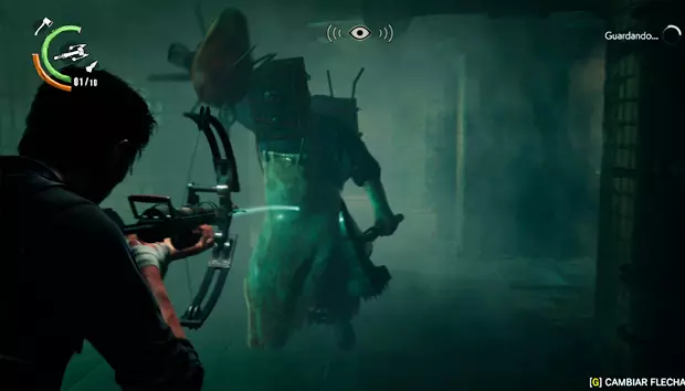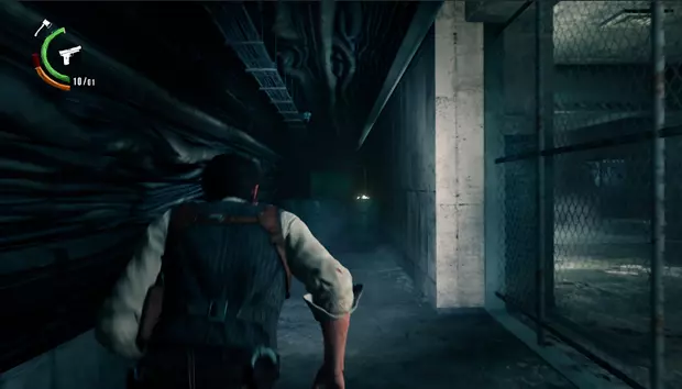 随着剧情推进,会出现一个新的 Boss。 Boss:【守望者】 需要与这个敌人进行两场战斗。 第一场战斗中,需要射击其红色的眼睛,然后攻击其面部才能造成伤害。比较棘手的是,地面上的白色物质会伸出爪子进行攻击。 击败它后,就可以离开这个房间。继续前进到下一个房间,守望者会抓住塞巴斯蒂安,此时只需瞄准它的眼睛就能结束战斗。