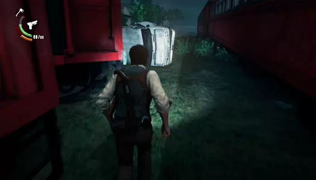 在翻倒的车辆前方不远处,有一个通往该列车某节车厢的入口。在尽头可以捡到另一个手枪弹药袋。