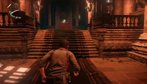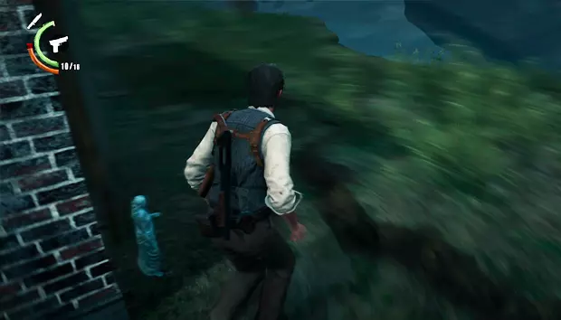 第十二章:无底深渊 从右侧场景开始,可以看到一座雕像,在那里可以获得一个手枪弹药袋。