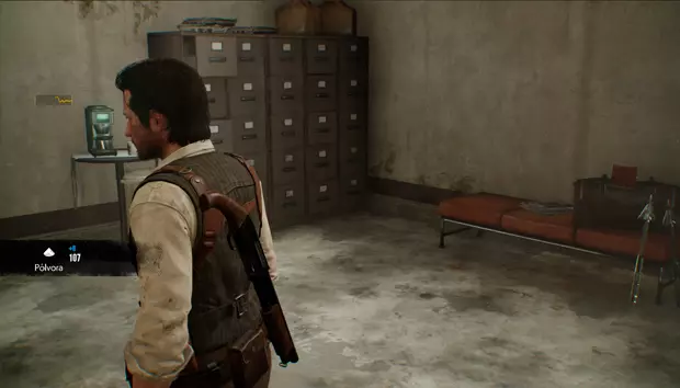 成就:Lector diligente 收集所有文件 需要再次射击另一个操纵杆来移除火墙,在新区域的右侧有一扇门。在那个房间里可以获得一个手枪弹药袋