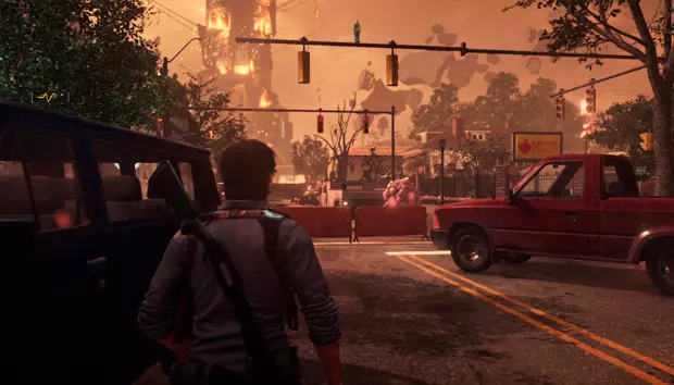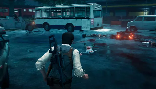 从右侧前进会有一辆泼洒了汽油的车辆。吸引2个或更多敌人后,向汽油射击将他们烧死,即可获得一个成就(如果此处未成功,之后也可以进行此操作)