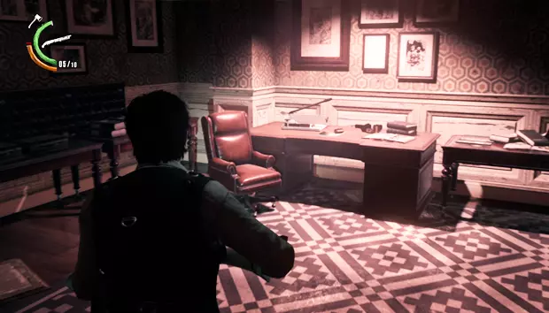 在左侧房间中,需要收集神秘物品【神秘符号】并检查塞巴斯蒂安的书桌。