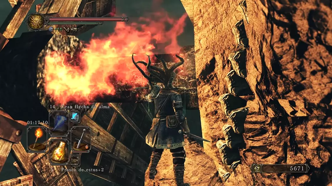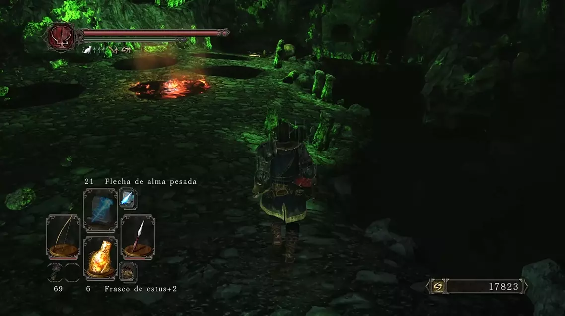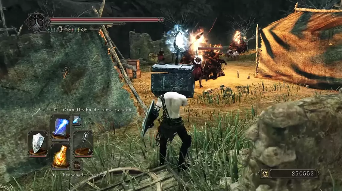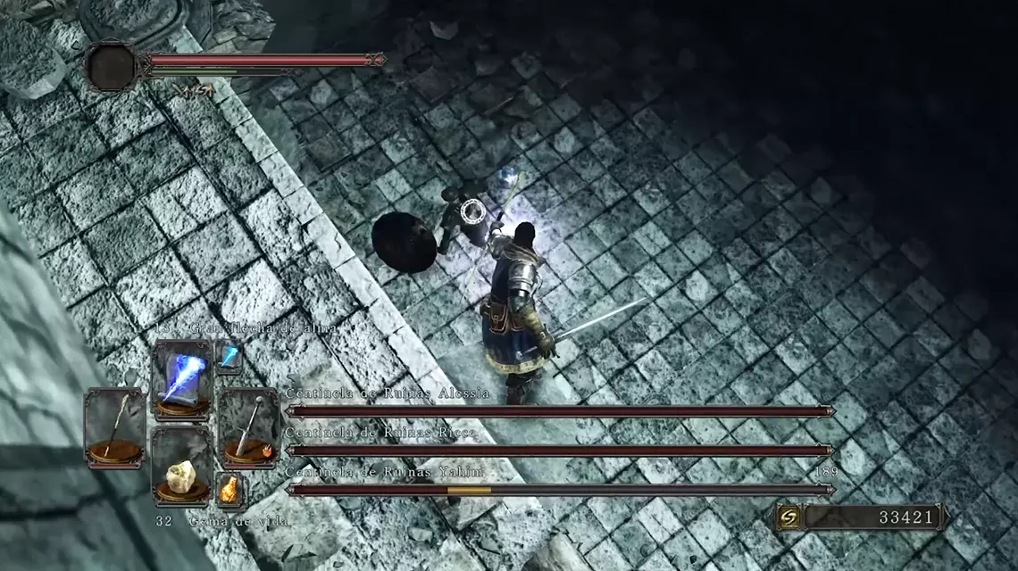 🗝️ Ahora solo queda continuar descendiendo y llegar a la arena del Último Gigante, al que derrotamos para obtener un logro. Es un jefe muy sencillo y basta con pegarle alternativamente en las piernas conforme las levanta. Con el gigante exterminado, podemos continuar hacia arriba esta vez, para enfrentarnos al Perseguidor. Es posible eliminarlo antes, cuando aparece en un patio, pero en este encuentro es tan sencillo como esperar en la zona terrosa delante de los barriles a que ataque, esquivar hacia delante y correr a la ballesta que hay detrás para empalarlo con 2 voleas. Igualmente, es un enemigo imponente pero tiene 3 ataques, así que es muy sencillo de eliminar con paciencia. Y al acabar con él utilizamos el nido de águila para viajar a la Fortaleza Perdida. Pisando la Bastilla 👥 Justo en la zona con la hoguera encontramos un cofre con un ascua mortecina, que usaremos para imbuir armas con el siguiente herrero. 🗝️ Si continuamos por la izquierda llegaremos a un patio con una rama de antaño, guardada por el Perseguidor, que usaremos dentro de poco. 👥 Entrando en el siguiente torreón encontramos a Lucatiel de Mirrah, con una quest que debemos seguir. Para esto tenemos que hablar con ella en los 4 puntos donde aparece, e invocarle para 3 de los 4 jefes en los que deja la señal. El orden da igual y es difícil pifiarla, pero en esta guía yo indico cómo encontrarla en todas sus apariciones. De momento, hablamos con ella y agotamos su diálogo. Poco después encontramos un enemigo petrificado delante de una puerta, con el que NO queremos usar la rama de antaño. Si lo hemos hecho, tendremos que comprar la rama de Melentia para luego y prestar más atención durante el resto de la guía >:/ Por la parte derecha encontramos un barril protegido por un celador. Queremos empujarlo recto para que choque con la pared bajo las escaleras, y que así explote y abra el camino. Si no explota, podemos usar una bomba de fuego. Así llegamos al taller de McDuff, con un montón de materiales de mejora. 👥 Si le otorgamos el ascua a McDuff podremos imbuir nuestras armas con diferentes efectos. Si hacemos build a inteligencia, queremos usar una piedra débil (no mágica) para imbuir armas y bastones que escalen con INT. Más adelante encontramos más piedras de infusión, las podemos comprar de un NPC, o incluso obtenerlas cambiando piedras suaves y sedosas con el cuervo del tutorial. Y debemos gastar unas 14,000 almas imbuyendo armas para recibir otro logro, algo que ya recordaré más adelante (aparte de llevar un arma al +10). 🗝️ Hecho esto, volvemos a Majula y abrimos la mansión con la llave de Cale para encontrar otra piedra de Pharros y eliminar a los esqueletos del sótano. Así Cale aparece al recargar partida y podemos hablar con él. 👥 Si retrocedemos desde Majula hacia la zona del tutorial, encontramos un camino por la derecha que nos lleva al aquelarre. Aquí encontramos a Benhart de Jugo, que funciona igual que Lucatiel (hablar 4 veces, invocar 3 veces) y también esconde un logro. Agotamos su diálogo y entramos en la estructura. Aquí toca despetrificar a Rosabeth de Melfia y darle cualquier ropaje para obtener un trofeo y que viaje a Majula (4/7). Podemos activar el mecanismo para encontrar la siguiente hoguera (tras un asalto con bichos verdosos). 🔥 Tras esto volvemos a Majula y le compramos a Rosabeth la primera piromancia, sudor relámpago (1/24). 🗣️ Caminamos hacia el aquelarre de nuevo para hablar con Benhart, y por salvar a Rosabeth nos otorga el gesto Alegría (2/12). 3 - Muelle de Nadie y Fortaleza Perdida Muelle de NadieVolvemos a la hoguera tras el Jinete de Dragones en la Torre de Heide y queremos continuar por ese camino, cruzando unas "cloacas" y llegando al Muelle de Nadie. 👥 Al avanzar llegaremos a unas escaleras ascendientes en la zona central. En una casita por la izquierda encontramos a Lucatiel, con la que queremos hablar y agotar todo su diálogo. Por la parte iluminada de la derecha encontramos un mecanismo de Pharros en el suelo, que podemos activar para encender la luz en todo el mapa, lo que nos ayuda con la visibilidad y asusta a unos enemigos cuadrúpedos. ☀️ Al subir las escaleras y avanzar por la derecha, llegamos a un cadáver en un risco con el milagro emitir fuerza (1/28). 🗝️ Dentro de un edificio debajo de la campana que tenemos que activar (para que llegue el barco con el jefe) encontramos una sala con jarras venenosas y un cofre con otra rama de antaño. 📜👥 En la zona central (cerca del atajo) encontramos a Carhillion del Redil, que nos vende hechizos si tenemos más de 8 de Inteligencia. Yo recomiendo comprarle flecha de alma pesada, arma mágica y anhelo (5/31). Ya de paso agotamos su diálogo para que viaje a Majula como exiliado (5/7). 👥 Tras esto es el momento de enfrentarnos al Centinela Flexible con la ayuda de Lucatiel. Su señal aparece en el muelle un poco delante del barco, así que recomiendo eliminar a todos los enemigos cercanos antes de usar una efigie humana e invocarle. Para que cuente, Lucatiel tiene que sobrevivir la pelea, pero este jefe es muy fácil. Si en cualquier pelea muere, basta con salir del juego para reaparecer fuera de la arena, y así poderle volver a invocar. Así que no le dejéis sola y meted daño para eliminarle rápidamente y completar 1/3 jefes con Lucatiel. 🔥 Tras el jefe encontramos un cofre con la piromancia bola de fuego (2/24). Fortaleza Perdida Al llegar aquí (por el otro extremo), recomiendo avanzar hasta cruzar un patio con perros y soldados y así abrir el circuito completo, llegando al herrero McDuff. Ahora sí continuamos por la puerta con el enemigo petrificado para llegar a los Centinelas de Ruinas. Esta pelea es difícil porque es un 1v3, así que queremos hacer el mayor daño posible a los centinelas antes de que se acumulen. Recomiendo quedarnos en la zona superior e intentar evitar sus ataques andando lateralmente, para pegarle tras