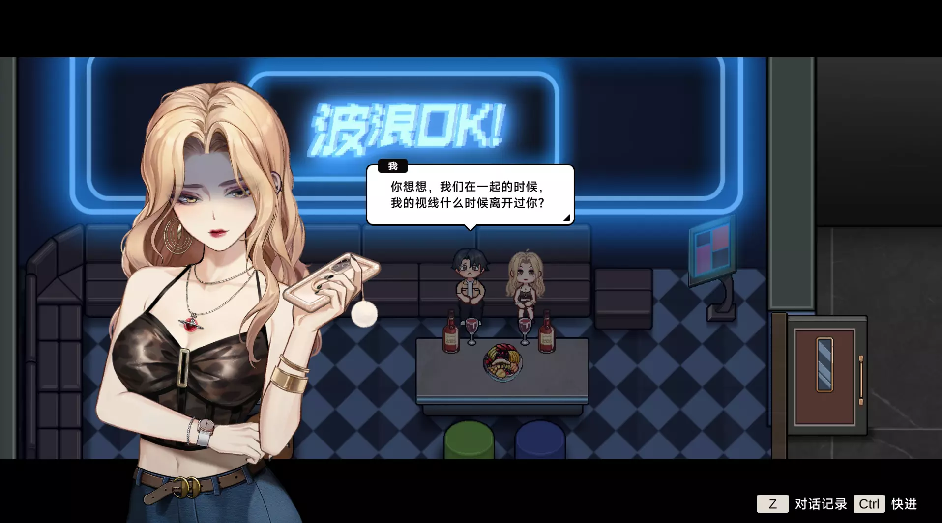 你就这么放心我啊 怎么奖励我这个好人 你来这么早 我也一样 干杯 继续挑衅 还好 和你在一起开心 去夜店想你了 对你的喜欢永远不变 下次当面说 还去夜店 迫不及待想见你 那就让她躁起来 好主意,我们一起 那我去活跃气氛 下次来打碟 再见 去KTV唱歌