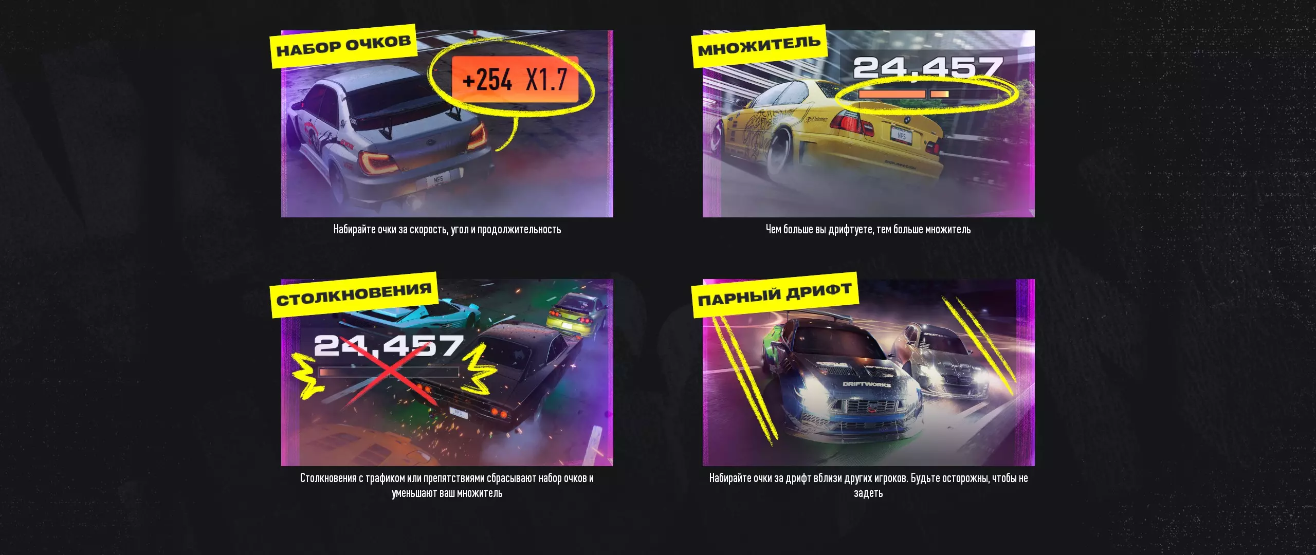 Авторы Главные редакторы перевода (и последующая поддержка): chromKa HarGabt Перевод текста: chromKa HarGabt Lurkarion Punpude (erdem1999erdem) Skulift St_RussL vitalityy223 и др. участники Notabenoid.org Шрифты: Punpude (erdem1999erdem) Александр "Всезнающий" Володин-Третьяков HarGabt Техническая составляющая: LinkOFF и Punpude (erdem1999erdem) — Разбор, документация строения кодировки и внедрение кириллицы в игру HarGabt — Значительная техническая помощь по Frosty VLADZENYA, WarLock и Mels— Способ запуска русификатора на Steam Deck и последующие тесты Особые благодарности Особые благодарности мы также выражаем этим людям: elaymm4 MSX mcvisoly Besbl4基本[t.me] justiamtgm jusezy No_Seegnal[www.twitch.tv] the_fastzer0[www.twitch.tv] alekssh11 pdprods midnightstrm[www.twitch.tv] OrangesLive[www.twitch.tv] Bardison[www.twitch.tv] kitty_____cat 51BER1A r033 Fox Mulder vanyanamek[www.twitch.tv] JohnGrivez[www.twitch.tv] Андрею "KO3bIPb"[www.twitch.tv] Евгению "Sonchyk"[www.twitch.tv] (хоть он и не ринулся играть в онлайн, сцуко) 2Dch[www.twitch.tv] (ЭТО РИЛЗ?) Алексею "Айну FM"[live.vkvideo.ru] EMILYTHEPRINCE[www.twitch.tv] SkeletonFX[live.vkvideo.ru] и всем тем, кто играет и стримит игру с нашим русификатором! Часто задаваемые вопросы У меня русификатор не работает! Универсальное решение: 1. Удалить русификатор 2. Перепроверить файлы (или даже переустановить полностью игру) 3. Запустить игру, чтобы проверить, что игра запускается, и чтобы записать в реестр факт существования игры. 4. Установить русификатор ещё раз. 5. Играть. 6. Если не играть, то пробовать другой метод установки: через Frosty. Удостоверьтесь, что вы ставили корректную версию русификатора под подходящую версию игры. Русификатор необходимо брать только из доверенных нами агрегатов: руководство Steam (вы здесь), PlayGround.ru, NFSMods, ZoG, наш сервер в Discord. Если с инсталлятором не получается запустить игру, пробуйте метод Frosty Mod Manager, предварительно удалив установленный русификатор и после перепроверив целостность файлов игры — это самый надёжный способ играть с русификатором, и заодно вы сможете с другими модами играть. Если русификатор нормально не удаляется, то в той же папке defaultinstallpackage удалите файлы от cas_190.cas до cas_194.cas и папку en там же, потом перепроверьте целостность игры. Если не помогает: Подробно описывайте то, что вы делали: ставили ли вы на чистую игру, каким методом установки пользовались, пробовали ли иные методы и т.д.. Комменты простого содержания типа "ничё у меня не работает!" не будут приниматься во внимание и будут удаляться. За русификатор в онлайне не забанят?Нет, не забанят! В игре даже нет античита как такового! У вас вирусы в русификаторе!То, что вы называете вирусом, на самом деле является компонентом Frosty Tool Suite (CryptBase.dll), который внедряет неродные игре файлы для работы этого же русификатора. Вместо того, чтобы строчить подобные комментарии, вы можете воспользоваться другим методом установки русификатора, если вам легче от этого. Все подобные комментарии будут удаляться. Русификатор будет работать с модом UNITE / Unbound Remix?Русификатор будет работать, однако некоторые элементы, добавленные авторами данных модов (стенс, названия двигателей, новые дифференциалы и т.д.) будут носить английские наименования. Мы рассматриваем возможность решения этой проблемы с разработчиками UNITE. Однако предупреждаем, что работа русификатора, установленного через инсталлятор или архив, с модом UNITE не гарантируется, так что если вы будете использовать UNITE с русификатором, то используйте именно версию для Frosty Mod Manager и не версию от инсталлятора/архива. Русификатор по порядку используемых модов 