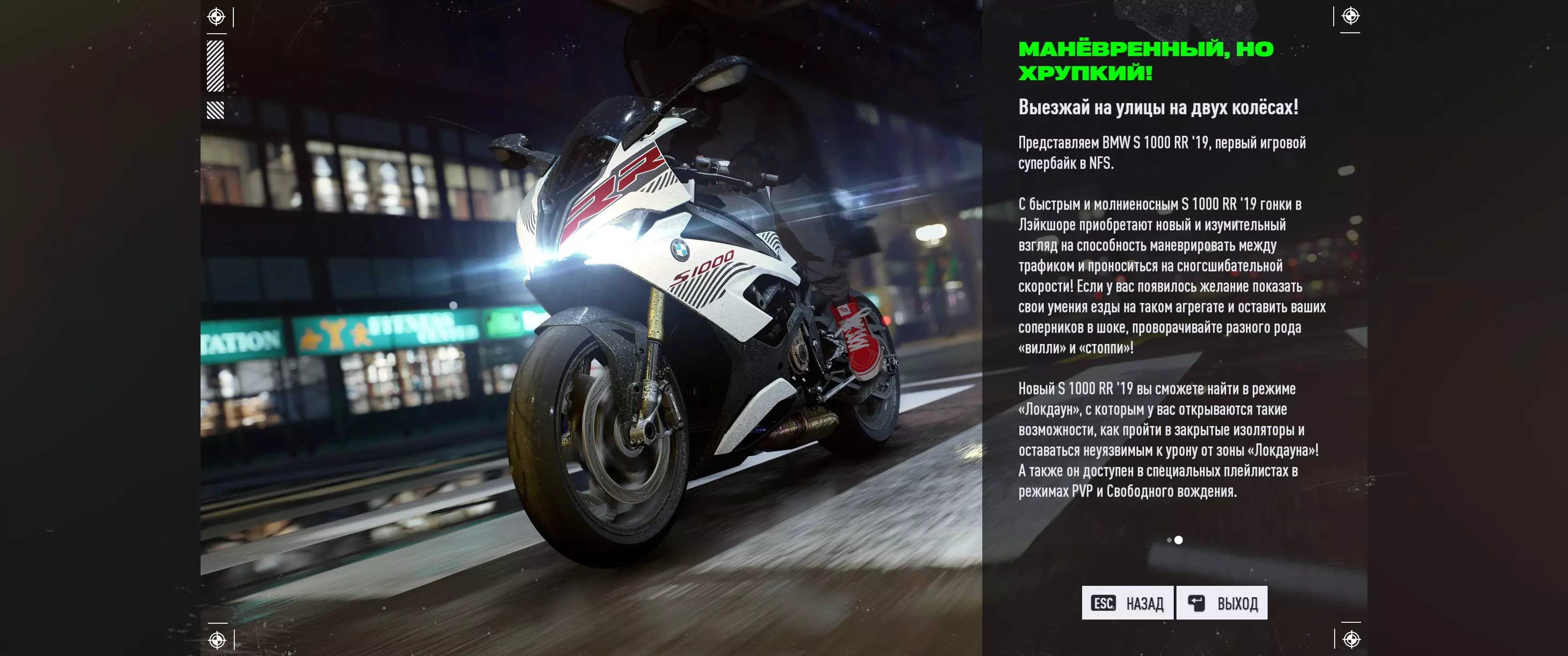如您所知,由于Electronic Arts退出俄罗斯市场,其后续的大多数游戏,包括《极品飞车:不羁》,均已推出且未来也将不再提供俄语本地化。这不仅引起了玩家的不满,也因语言障碍给理解游戏内容带来了困难。但最终在我们的努力下,《极品飞车:不羁》的翻译终于问世,它填补了这一空白,让你能够以最初应有的方式体验这款游戏!替换了游戏中所有英文本地化文件,翻译了游戏内的全部文本!
