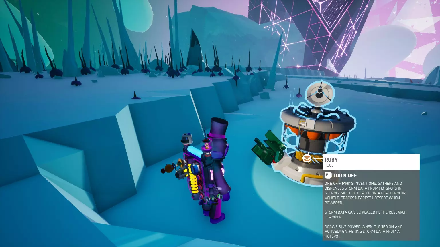 现在你需要前往一个非希尔瓦星球。(带上红宝石!)我建议准备某种载具来放置红宝石,因为它们会消耗电力。在星球上,你必须寻找一场风暴。