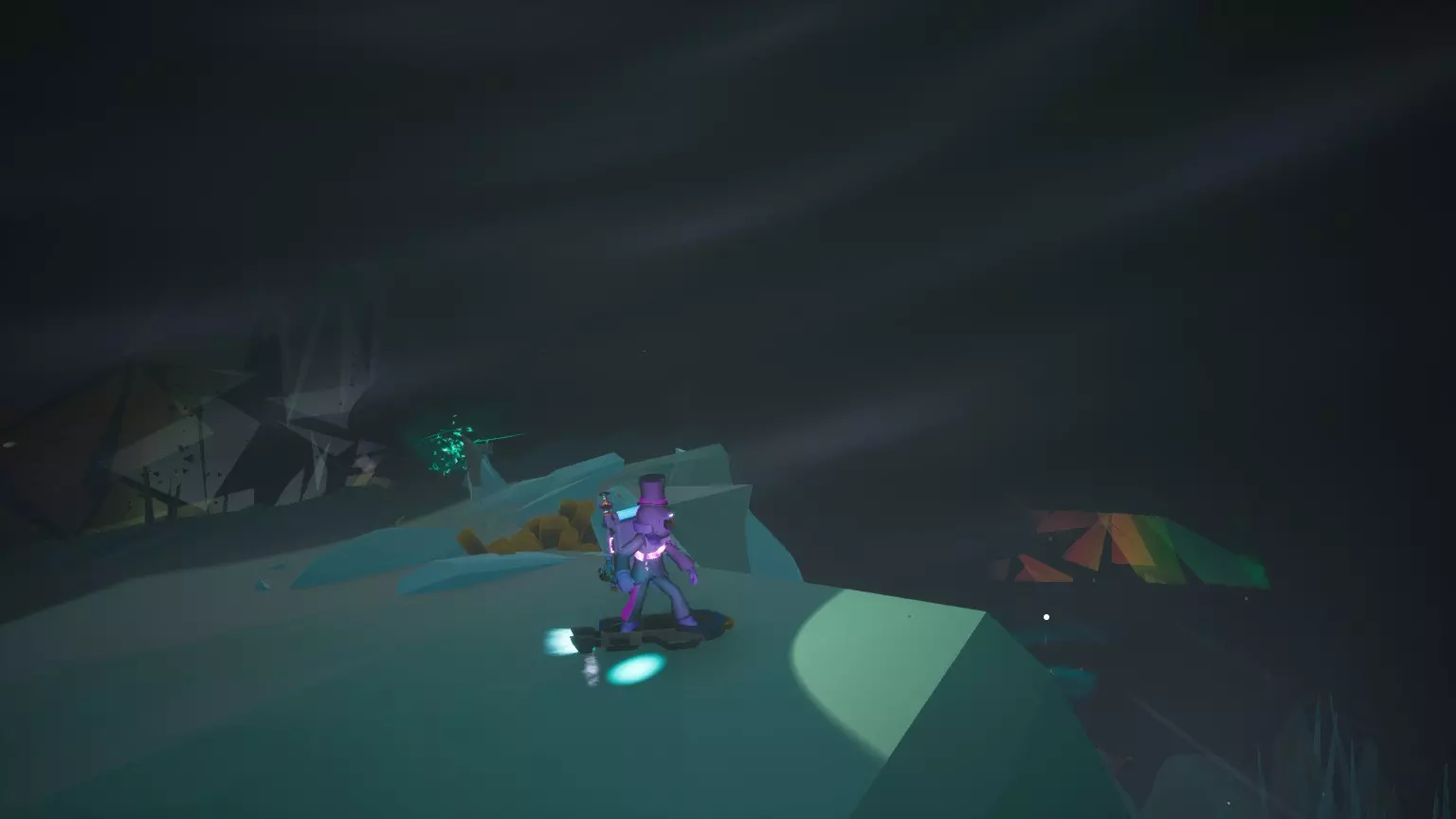 当你到达地窖后,要解锁它需要完成一个谜题。你需要拿起地窖发光部分的黑色方块,然后交换它们的位置并旋转,以找到它们的正确位置。如果方块处于正确的位置和方向,它就会发光并略微沉入地窖。完成这个谜题后,你就可以开始建造一个简单的基地了。