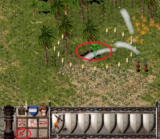 现在你们可以利用这个空位了。:) (虽然也可以使用其他灭火方法,但我更推荐使用火焰喷射器,因为它们不像弓箭手+煤炉那样固定在某个位置。) 不过,这整个方法有一个缺点,那就是树木只能在特定距离内被烧毁。矿坑也只能在距离城堡特定范围内建造。