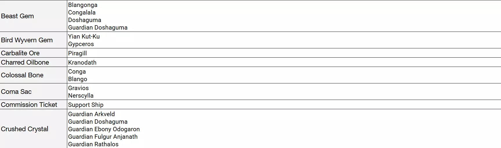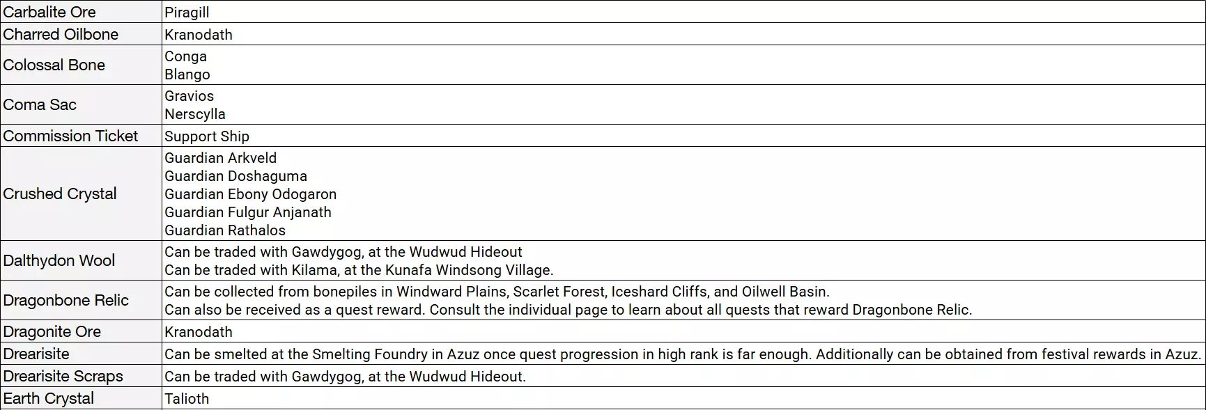 所有怪物素材(掉落物)及获取方法列表(已移除名称易懂的掉落物,如“Ajarakan Carapace”)