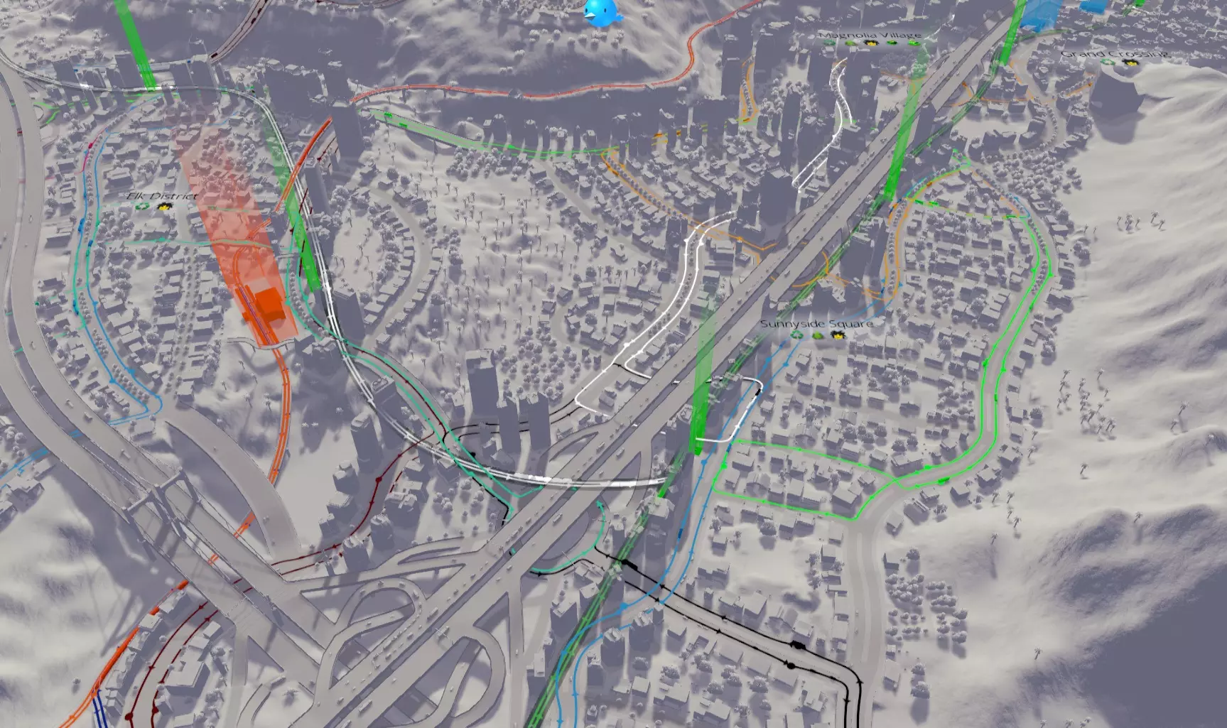 道路建设有时候就是这么麻烦。 步骤8.5:等待 别忘了,你的城市需要一些时间来重新调整,因为车辆要么会选择新的路径,要么会刷新出了解新道路布局的新车辆。之后它们还得实际开到受影响的区域。同时,即使技术上一切正常,问题区域也需要一些时间才能疏通。 步骤9:解决问题了吗?